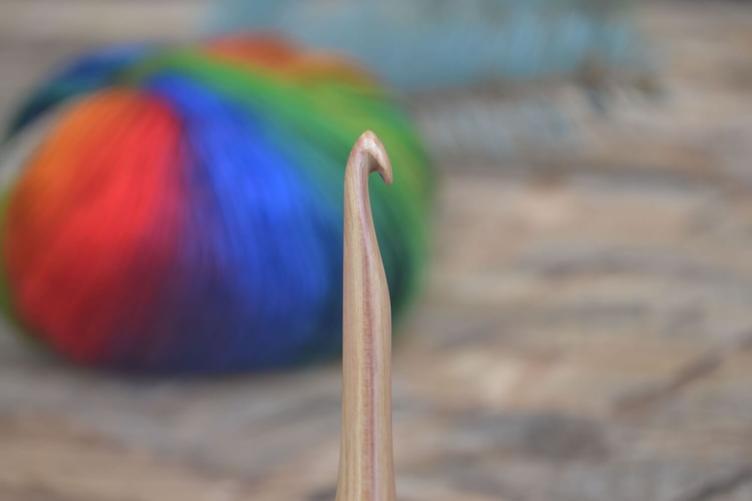 7.5 mm Black Hornbeam, Mosaic Robinia/Apricot/Hornbeam wood Ergonomic Crochet Hook 24 mm 17 cm # 1042-4732