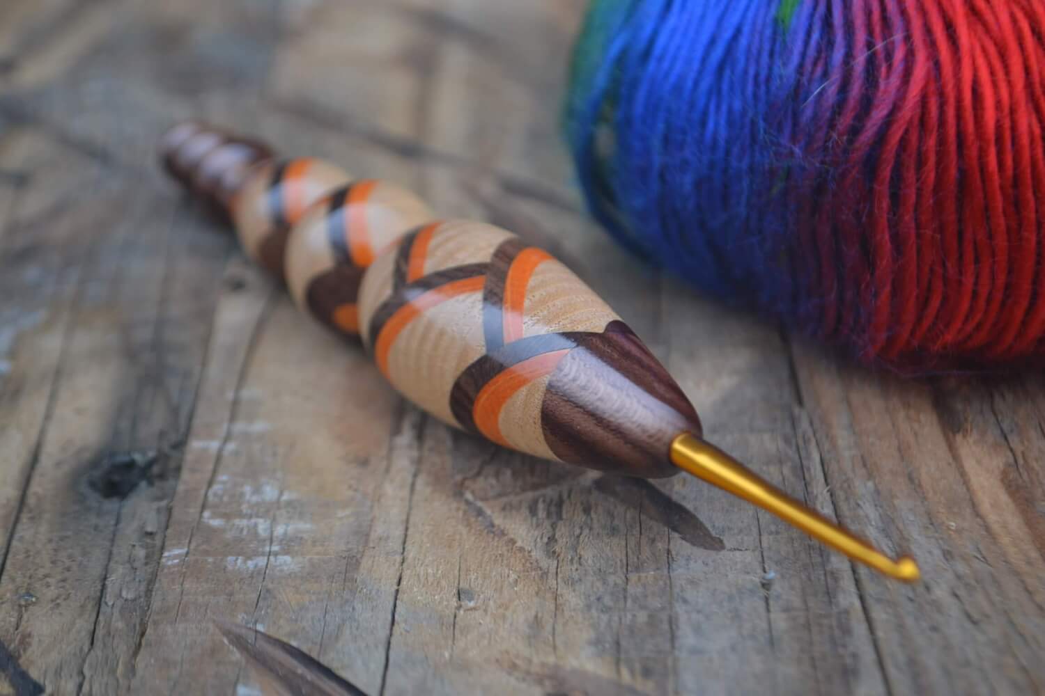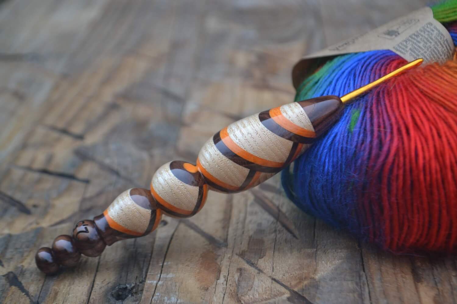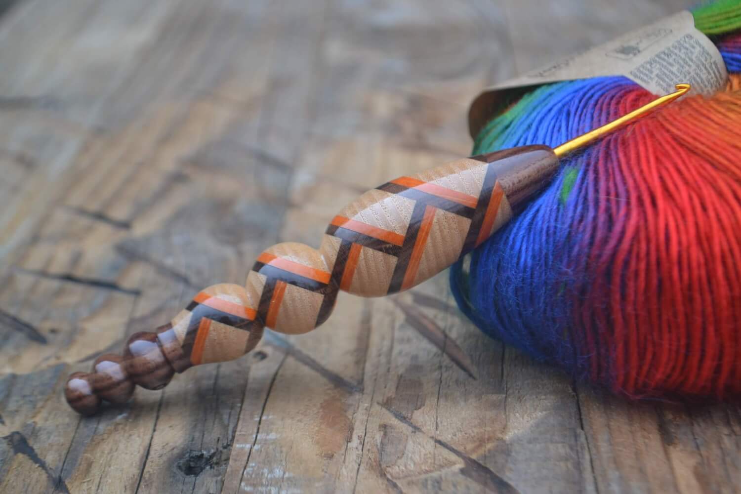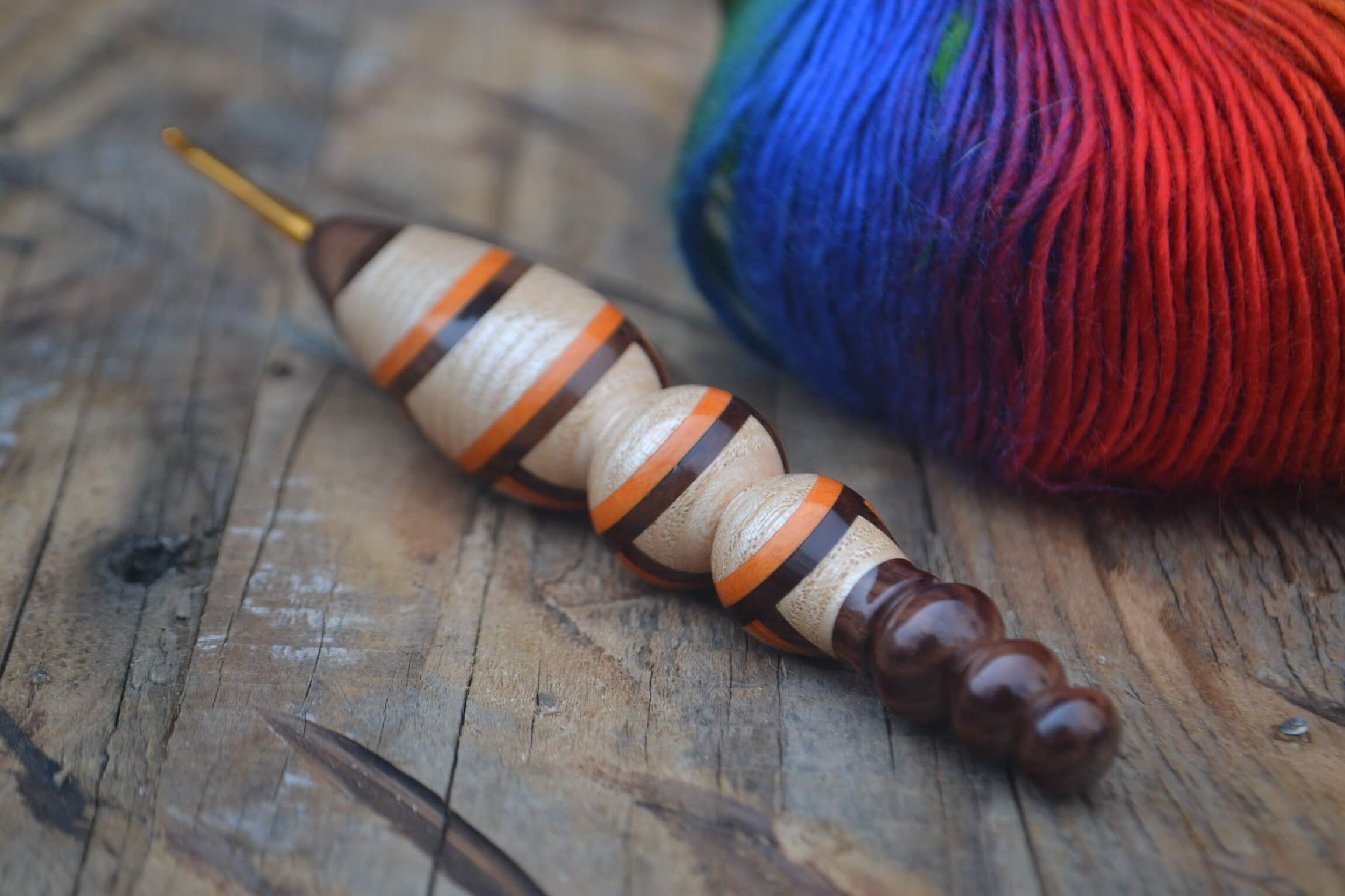2.5 mm Tulip Gold, Dark Apricot, Ash, Orange Hornbeam wood mosaic Ergonomic Crochet Hook 24 mm 16 cm #1492-5182