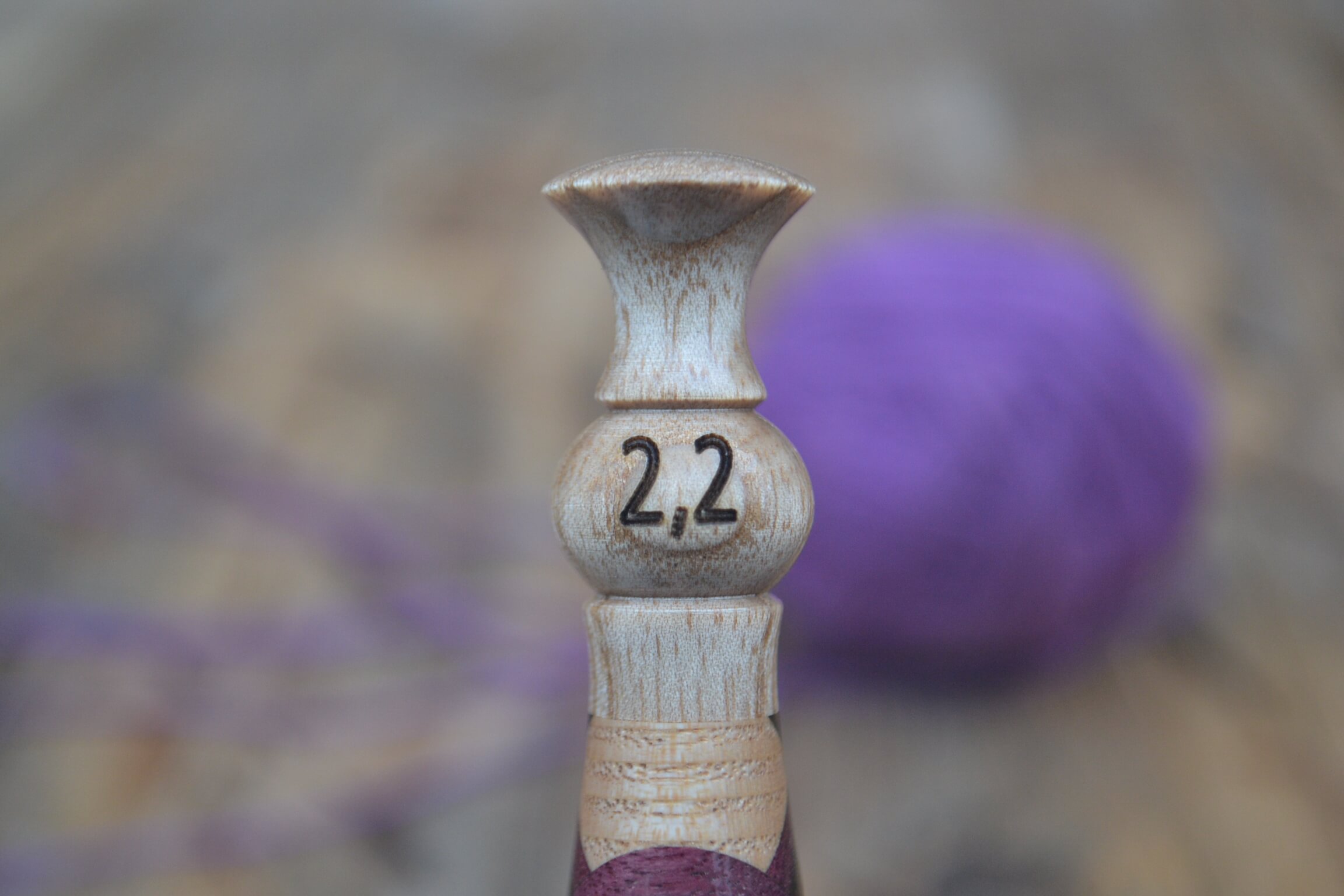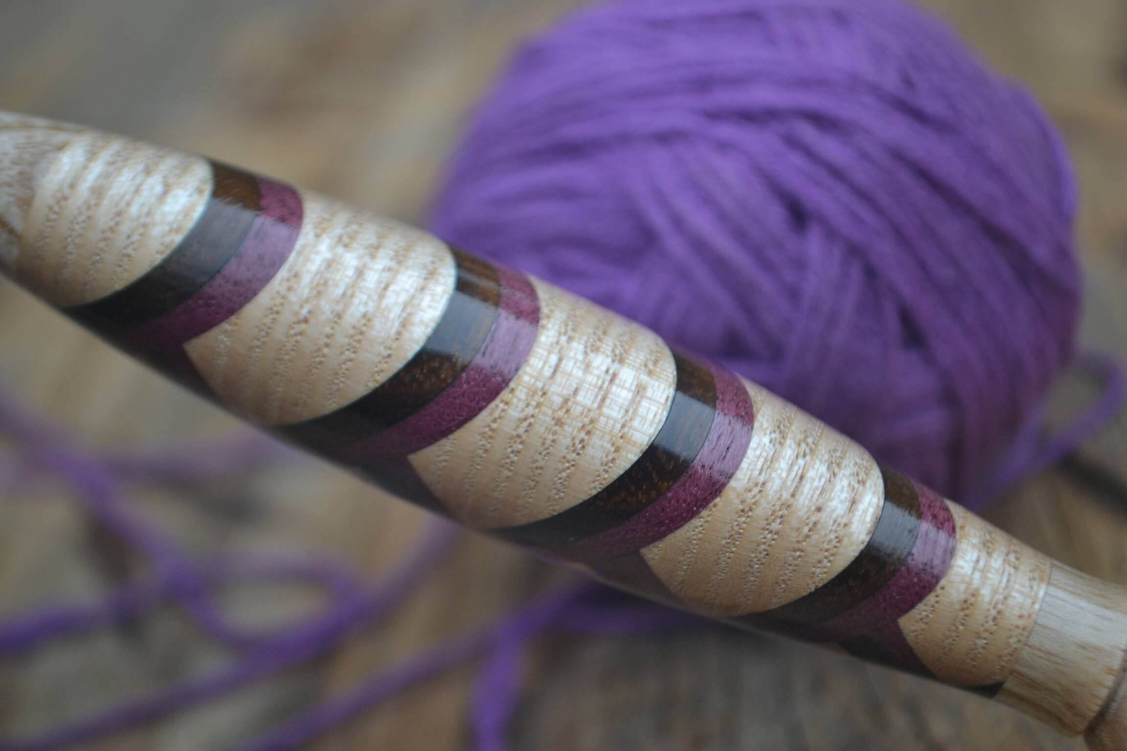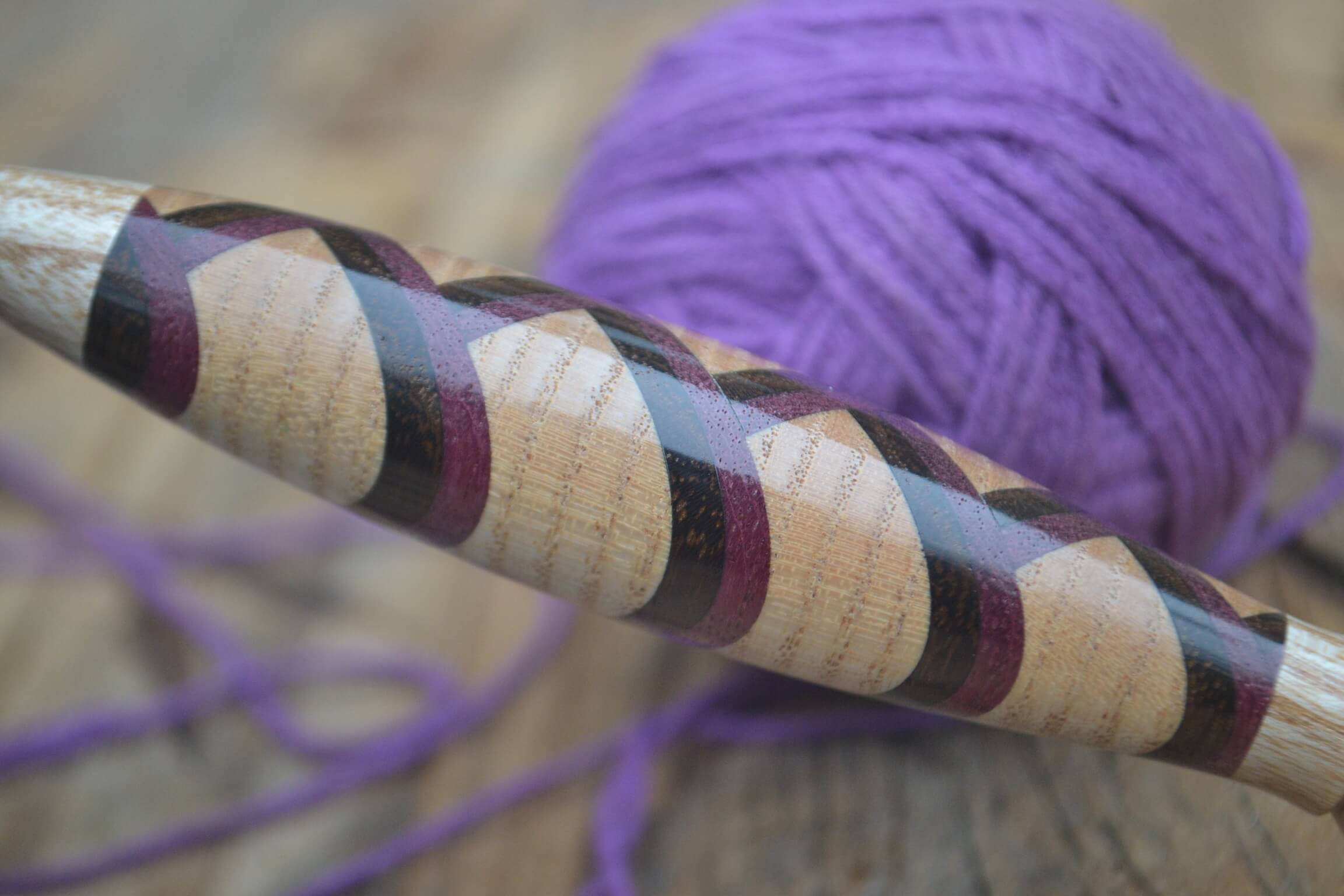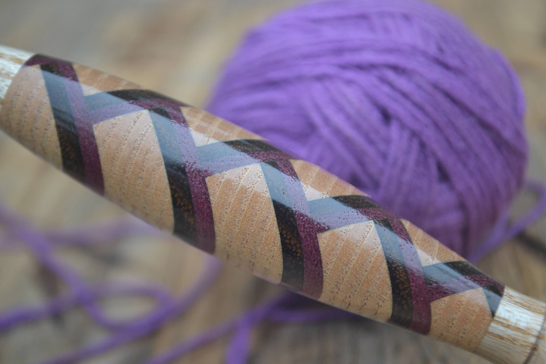 2.2 mm Tulip Gold, Ash, Purpleheart, Dark Mulberry wood mosaic Ergonomic Crochet Hook 21 mm 16.3 cm #1496-5186