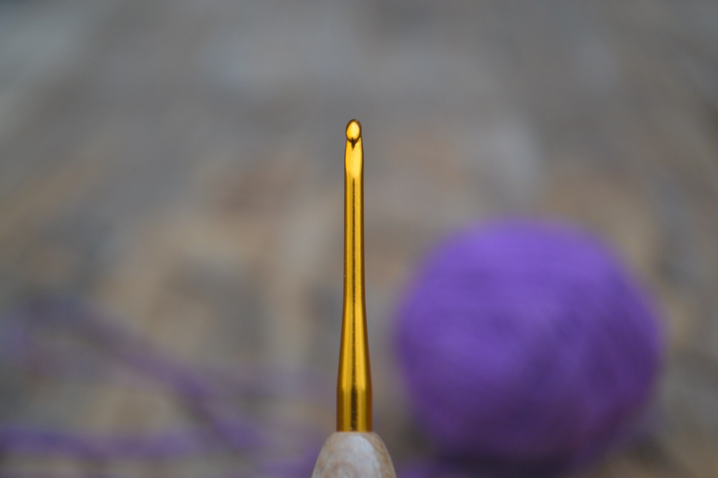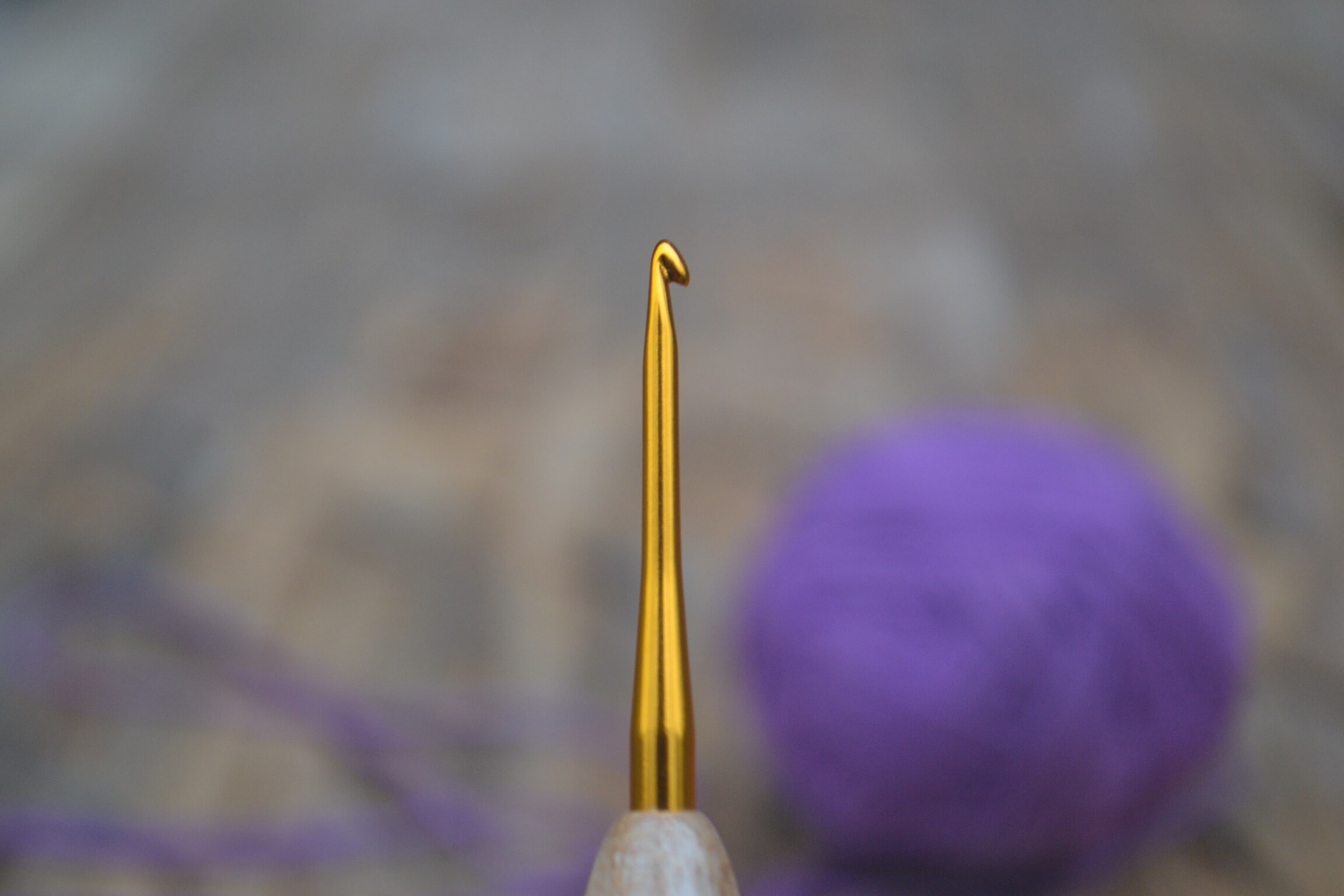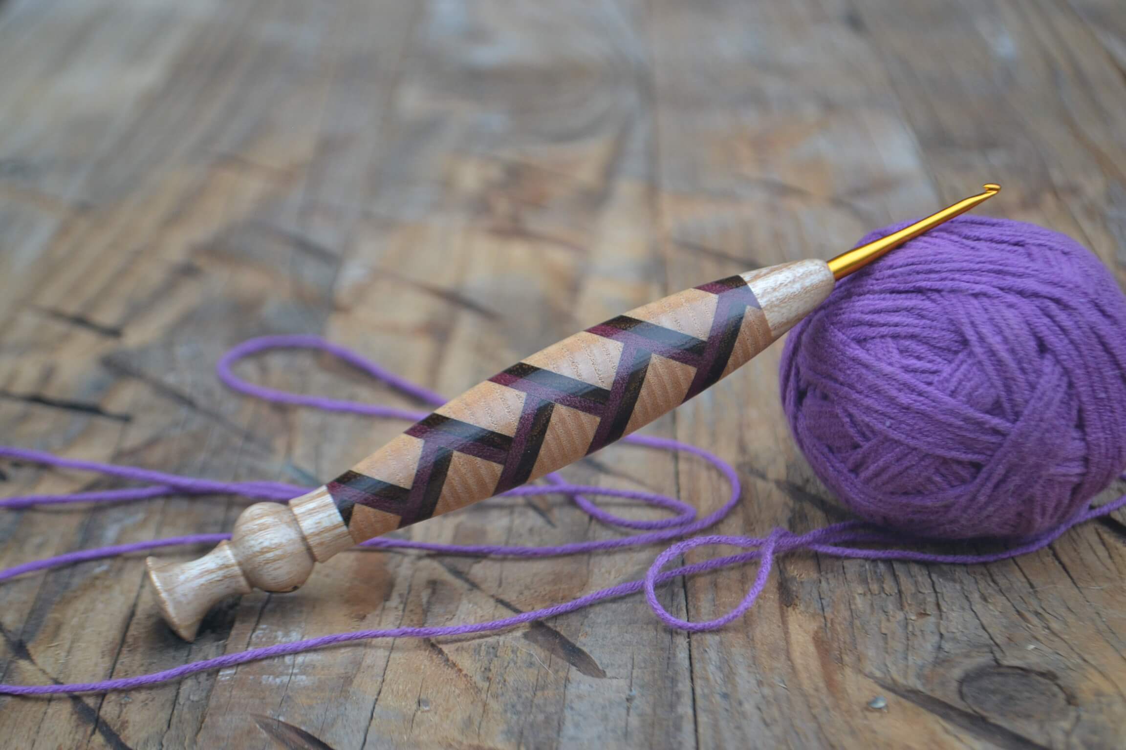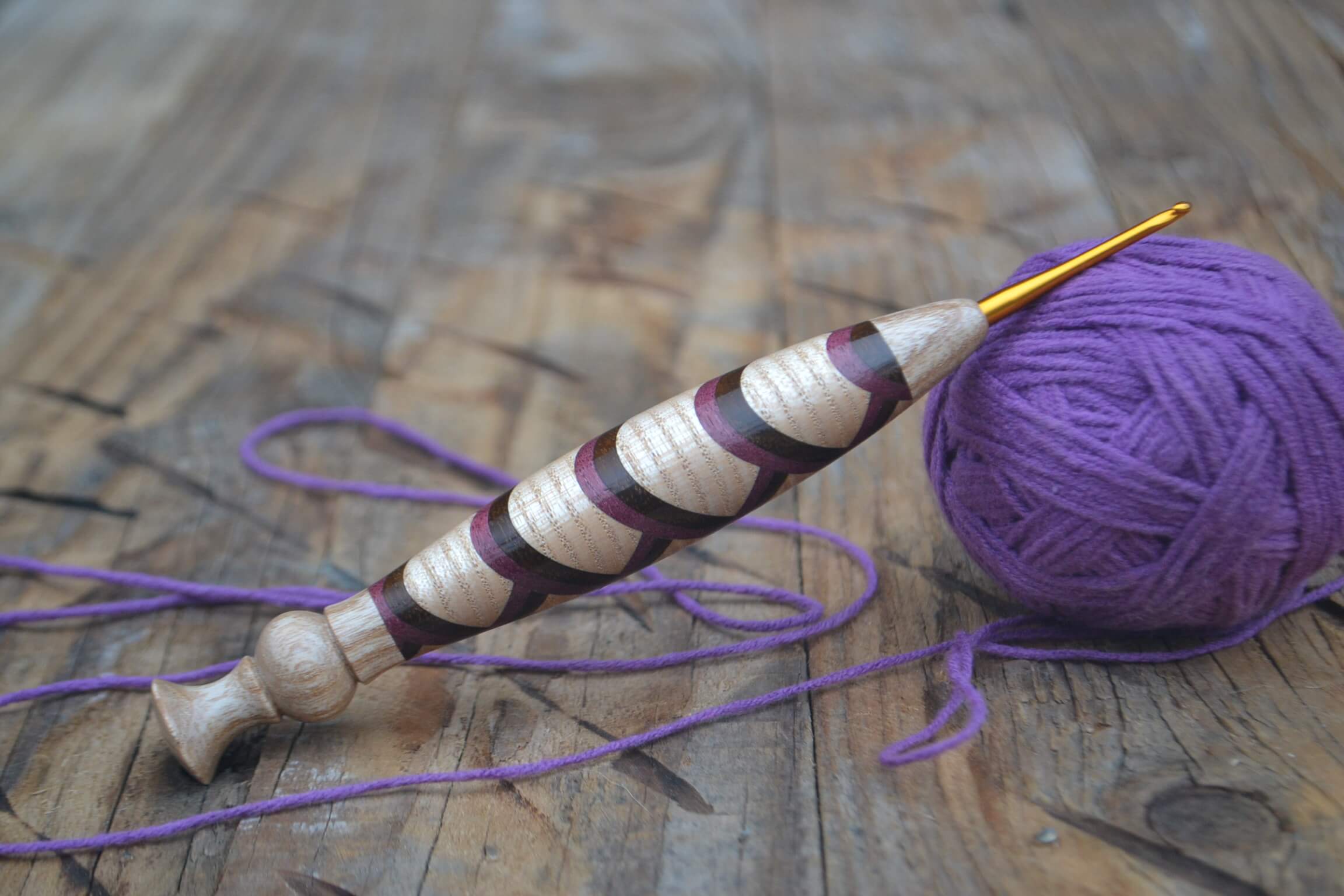 2.2 mm Tulip Gold, Ash, Purpleheart, Dark Mulberry wood mosaic Ergonomic Crochet Hook 21 mm 16.3 cm #1496-5186