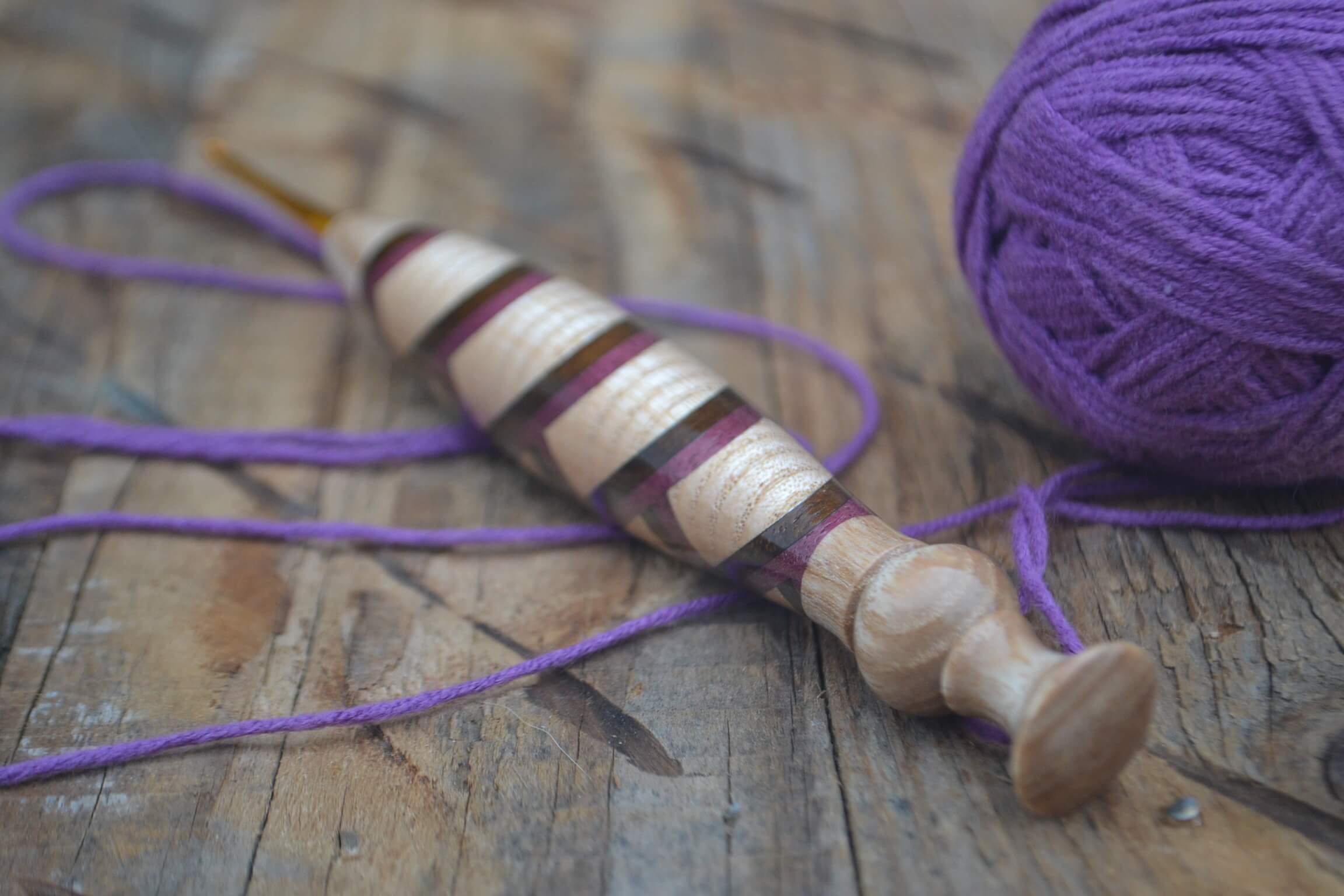 0,75 mm Clover Amour Purpleheart and Robinia/Hornbeam wood mosaic Ergonomic Crochet Hook 19 mm 15 cm #1140-4830