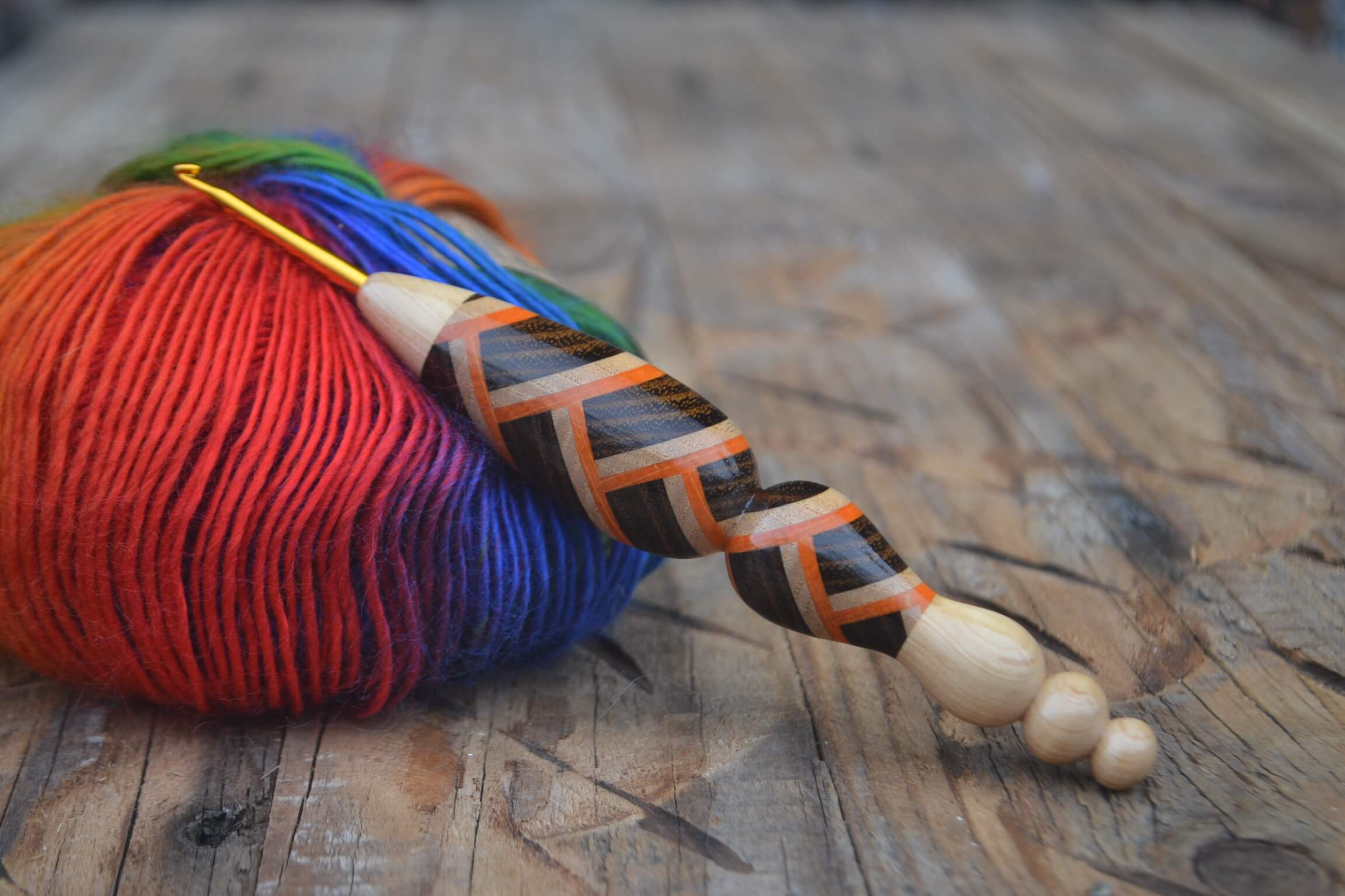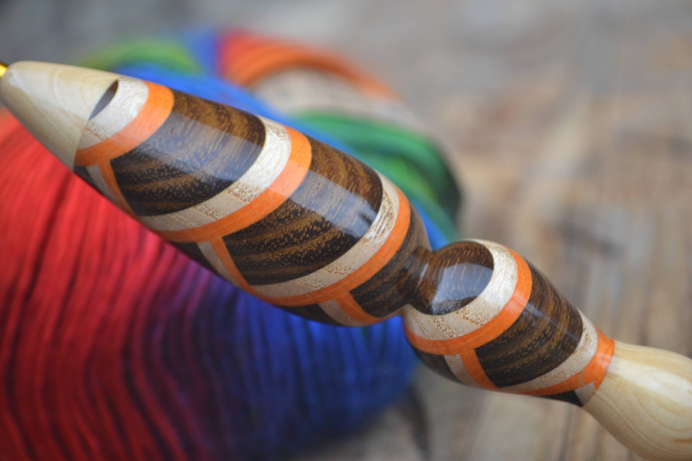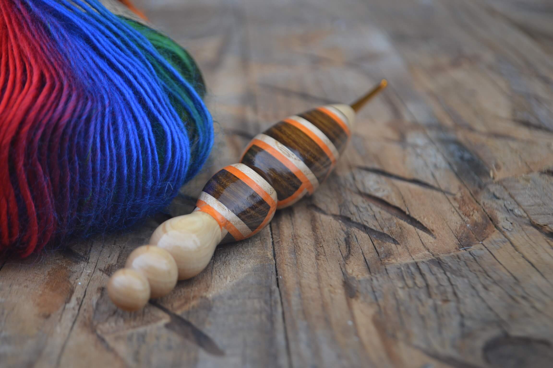 3 mm Tulip Gold, Lilac, Robinia, Orange Hornbeam, Ash wood mosaic Ergonomic Crochet Hook 23 mm 17 cm #1497-5187