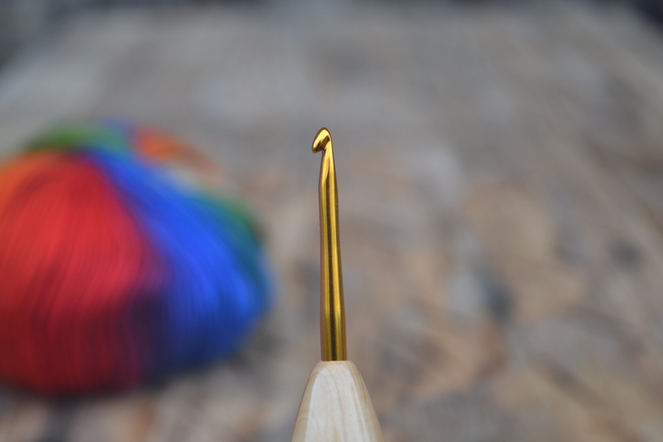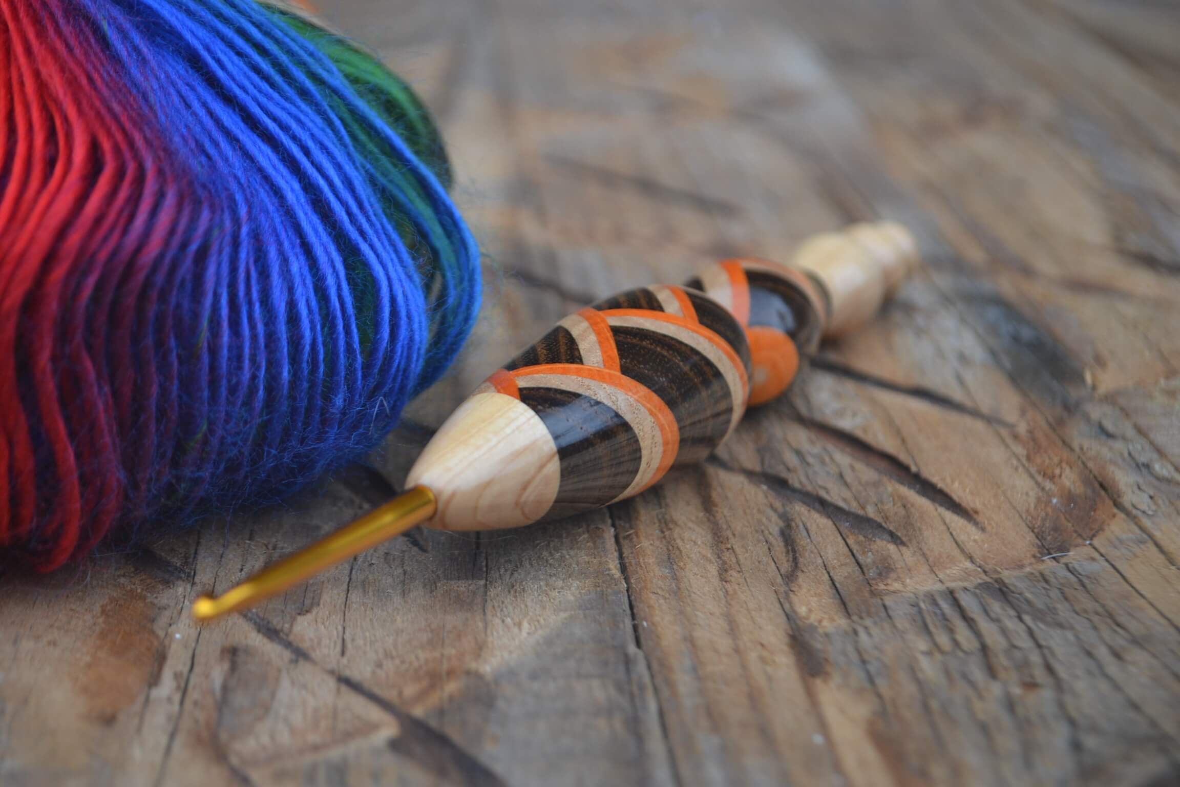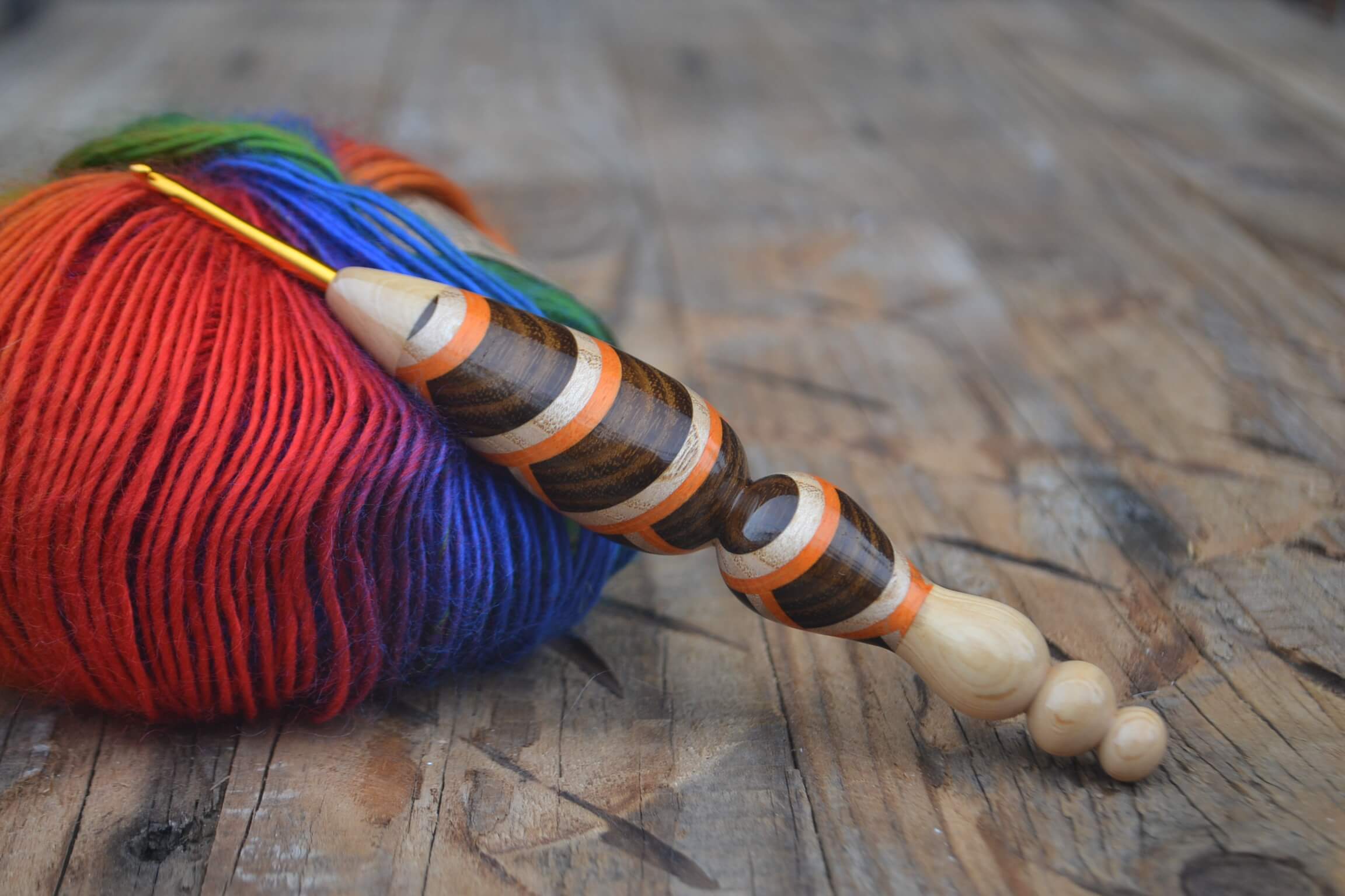 3 mm Tulip Gold, Lilac, Robinia, Orange Hornbeam, Ash wood mosaic Ergonomic Crochet Hook 23 mm 17 cm #1497-5187