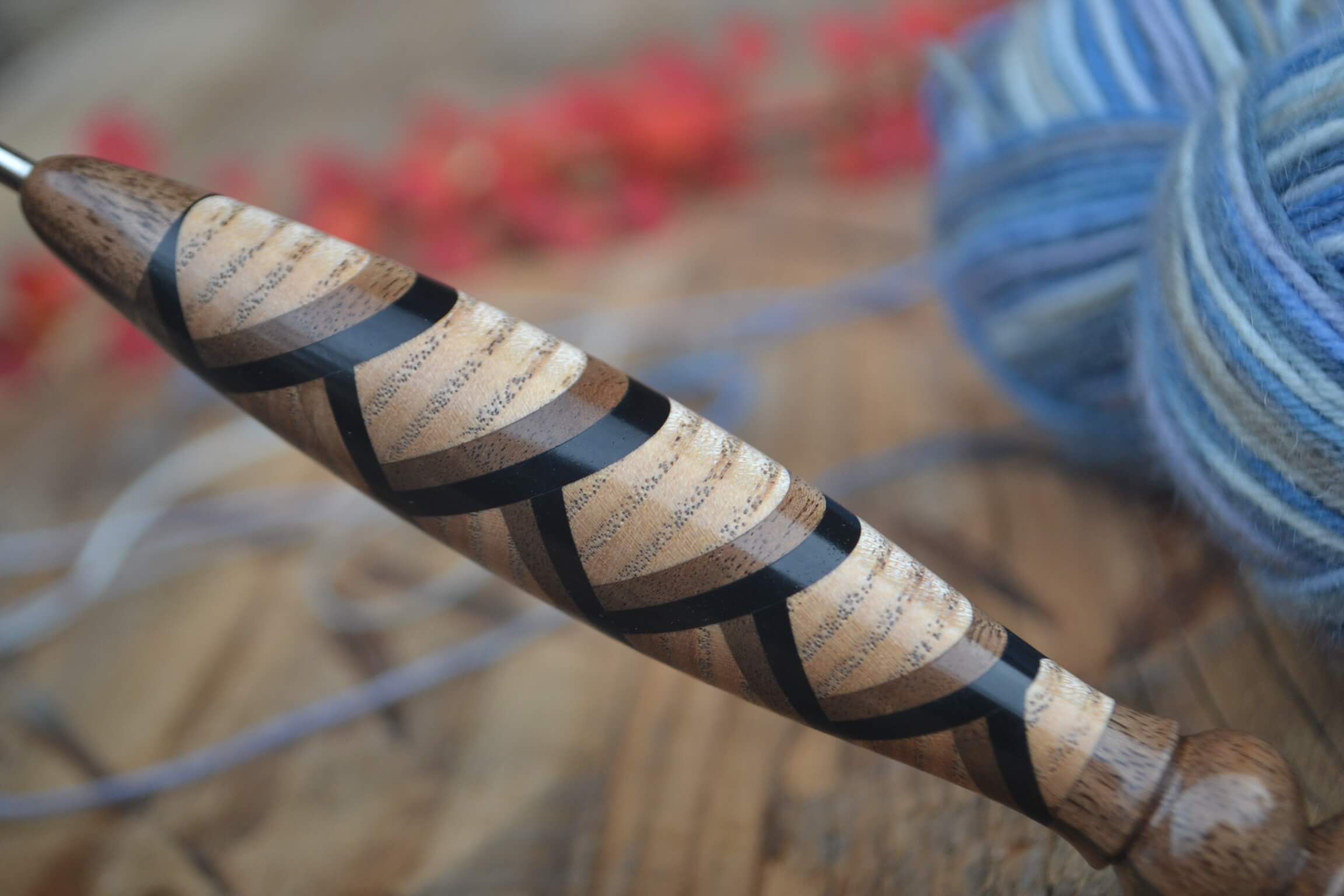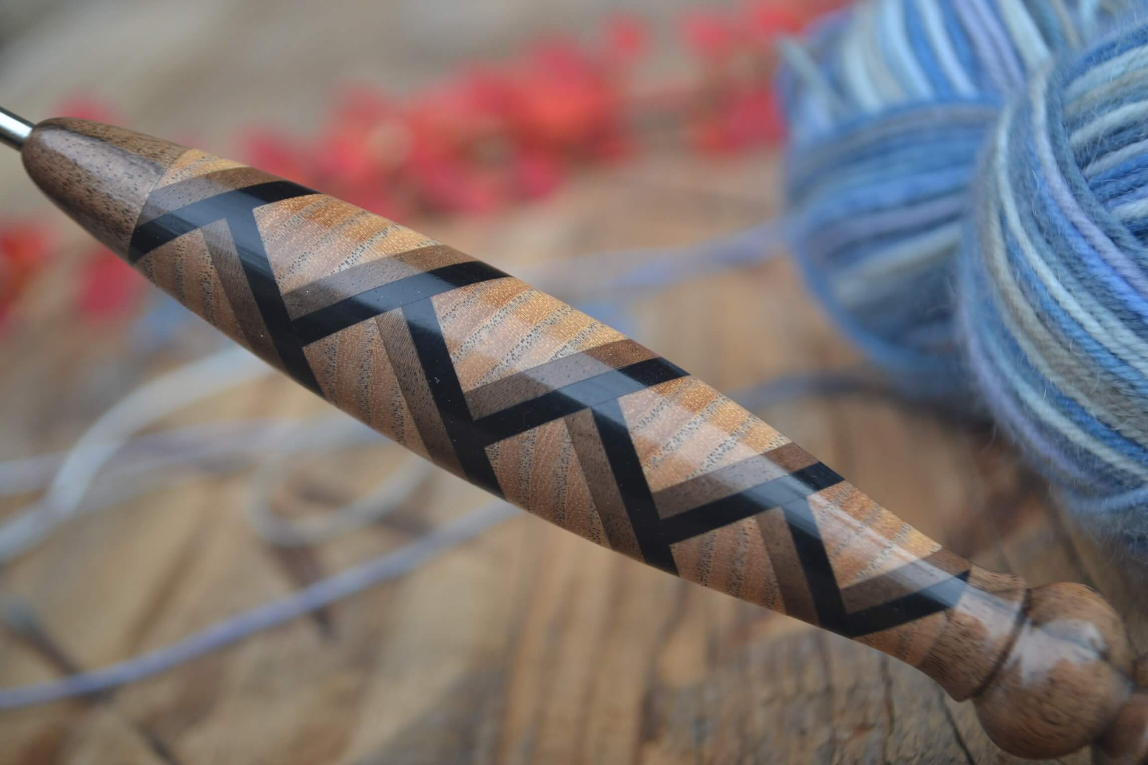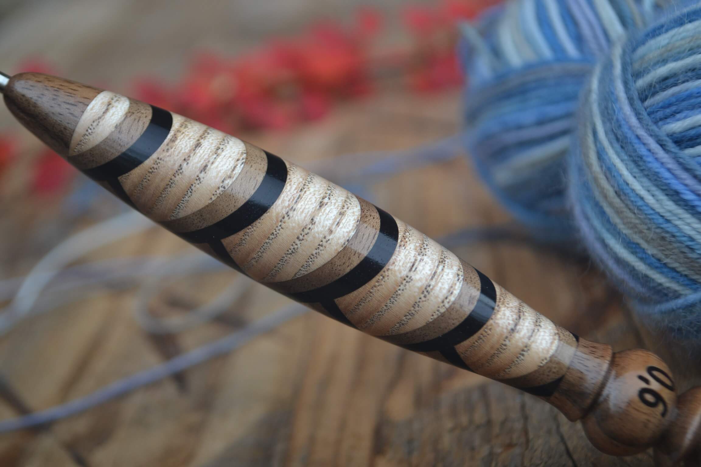 7.5 mm Black Hornbeam, Mosaic Robinia/Apricot/Hornbeam wood Ergonomic Crochet Hook 24 mm 17 cm # 1042-4732