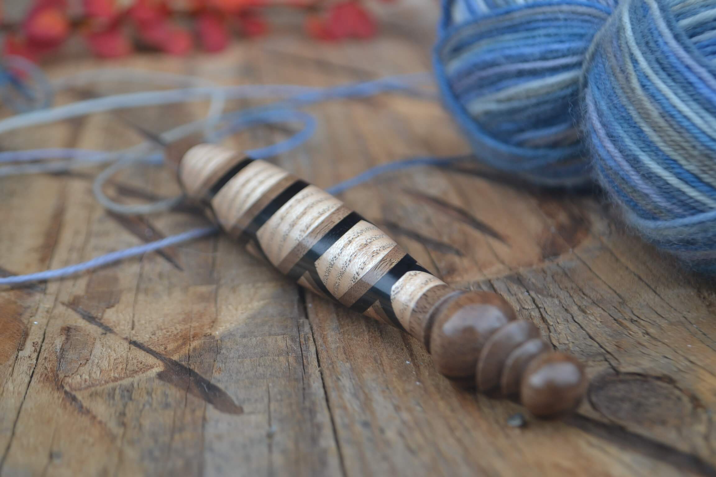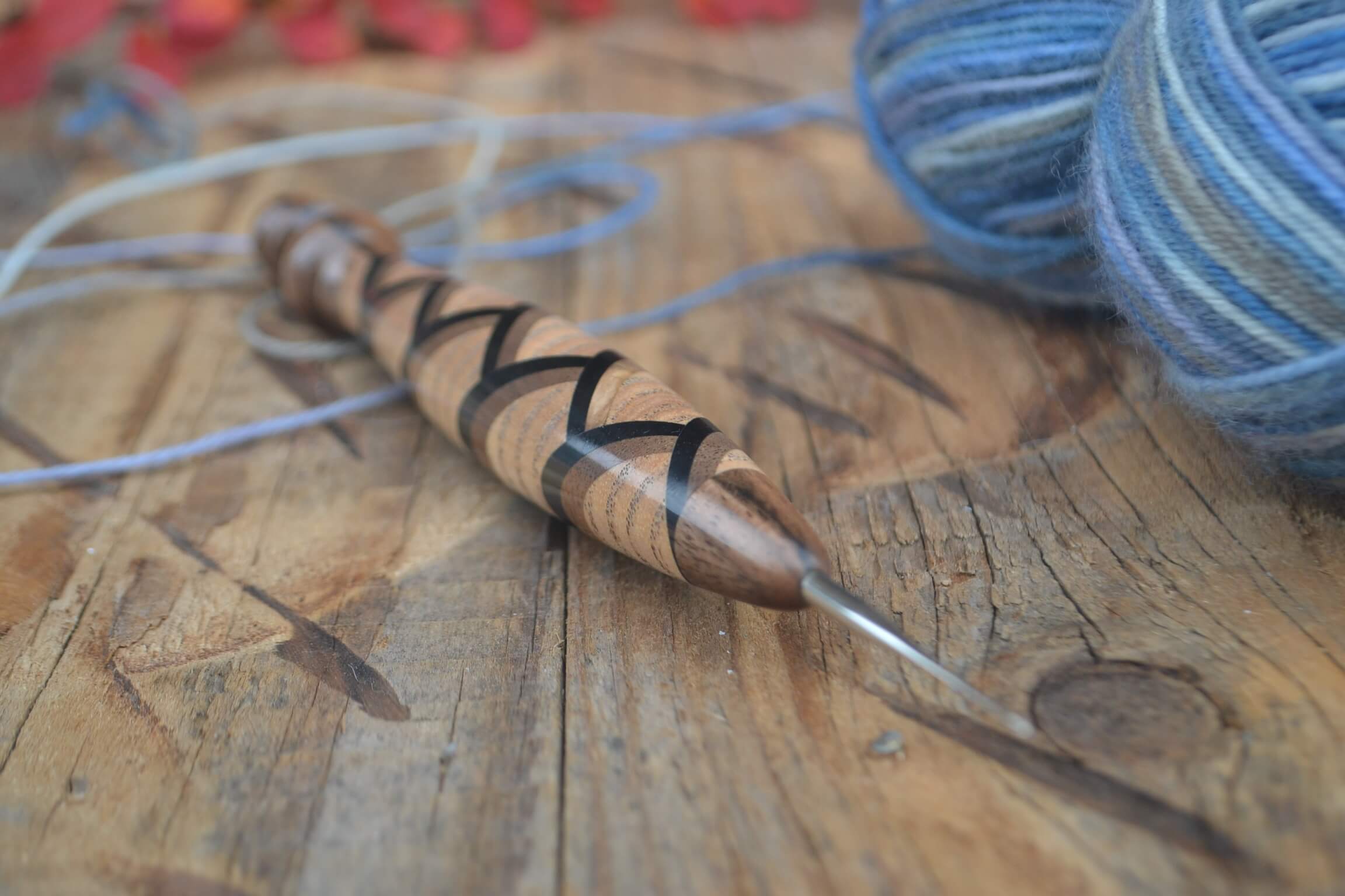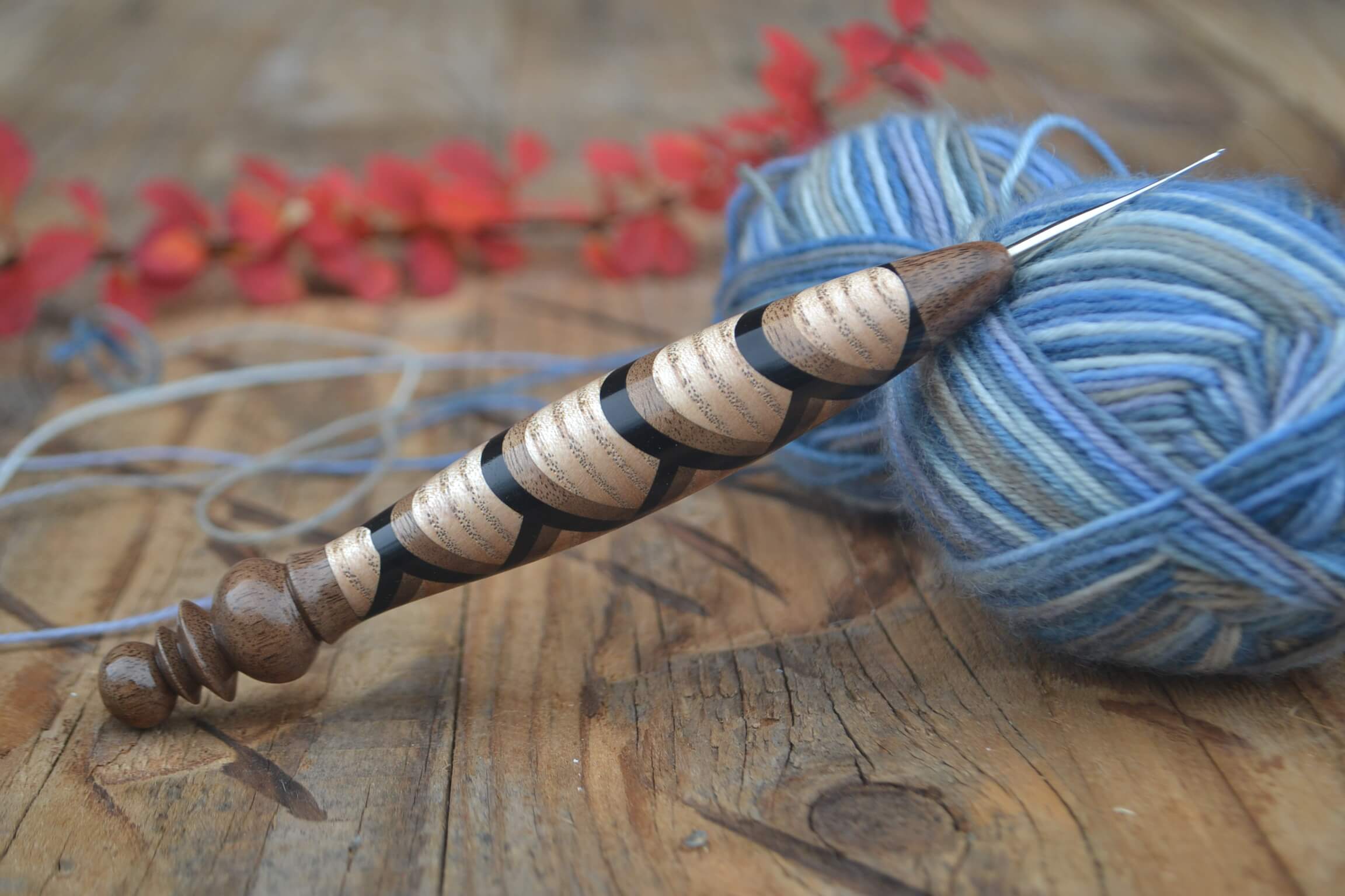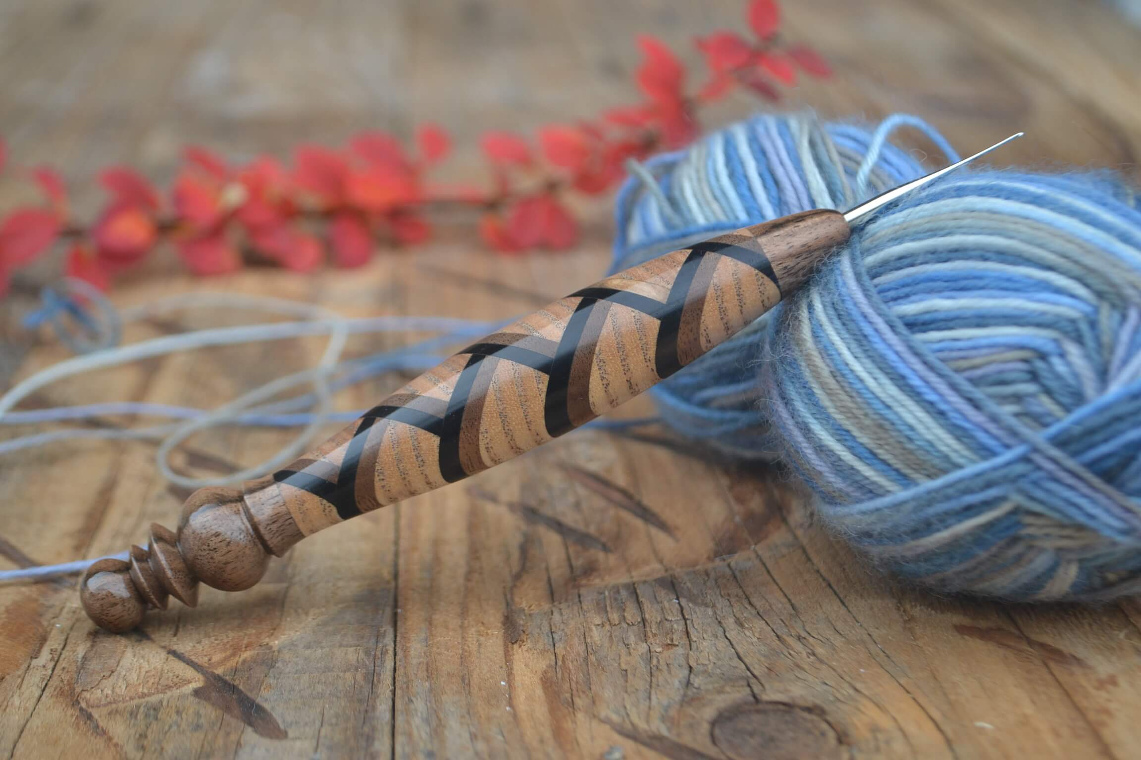 7.5 mm Black Hornbeam, Mosaic Robinia/Apricot/Hornbeam wood Ergonomic Crochet Hook 24 mm 17 cm # 1042-4732