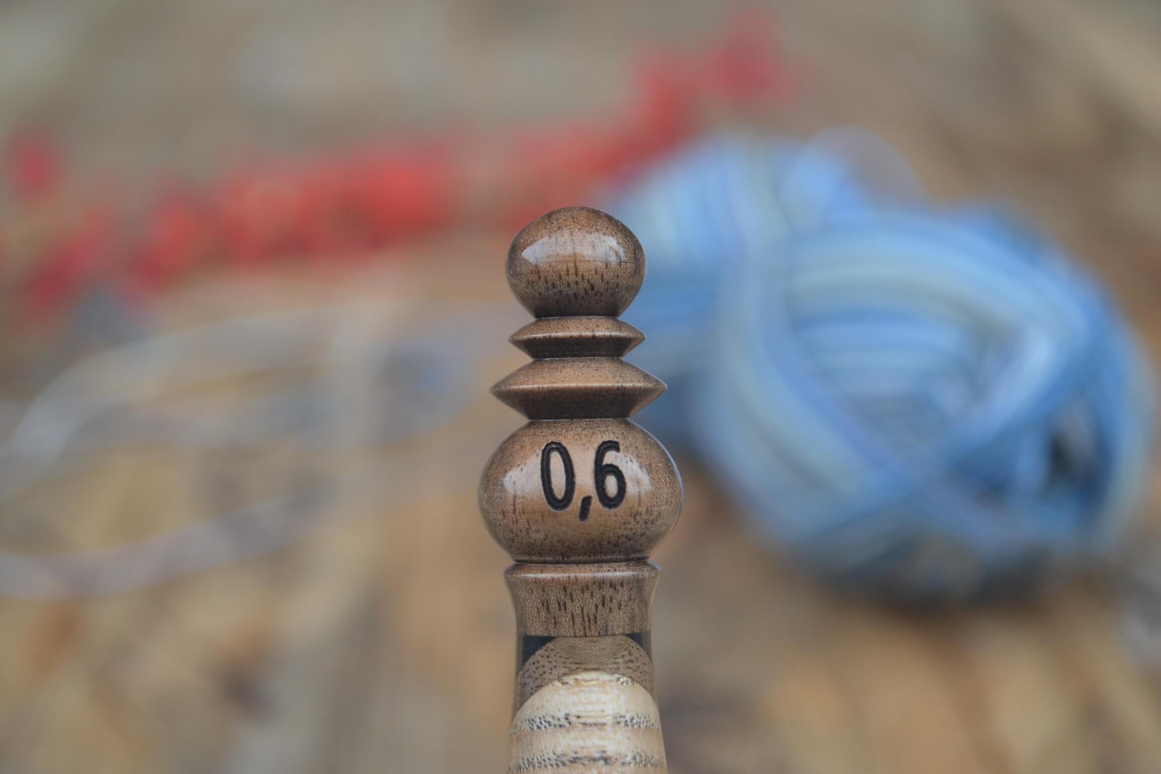 0.6 mm Clover Amour, Walnut, Ash, Black Hornbeam wood mosaic Ergonomic Crochet Hook 20 mm 16 cm #1498-5188