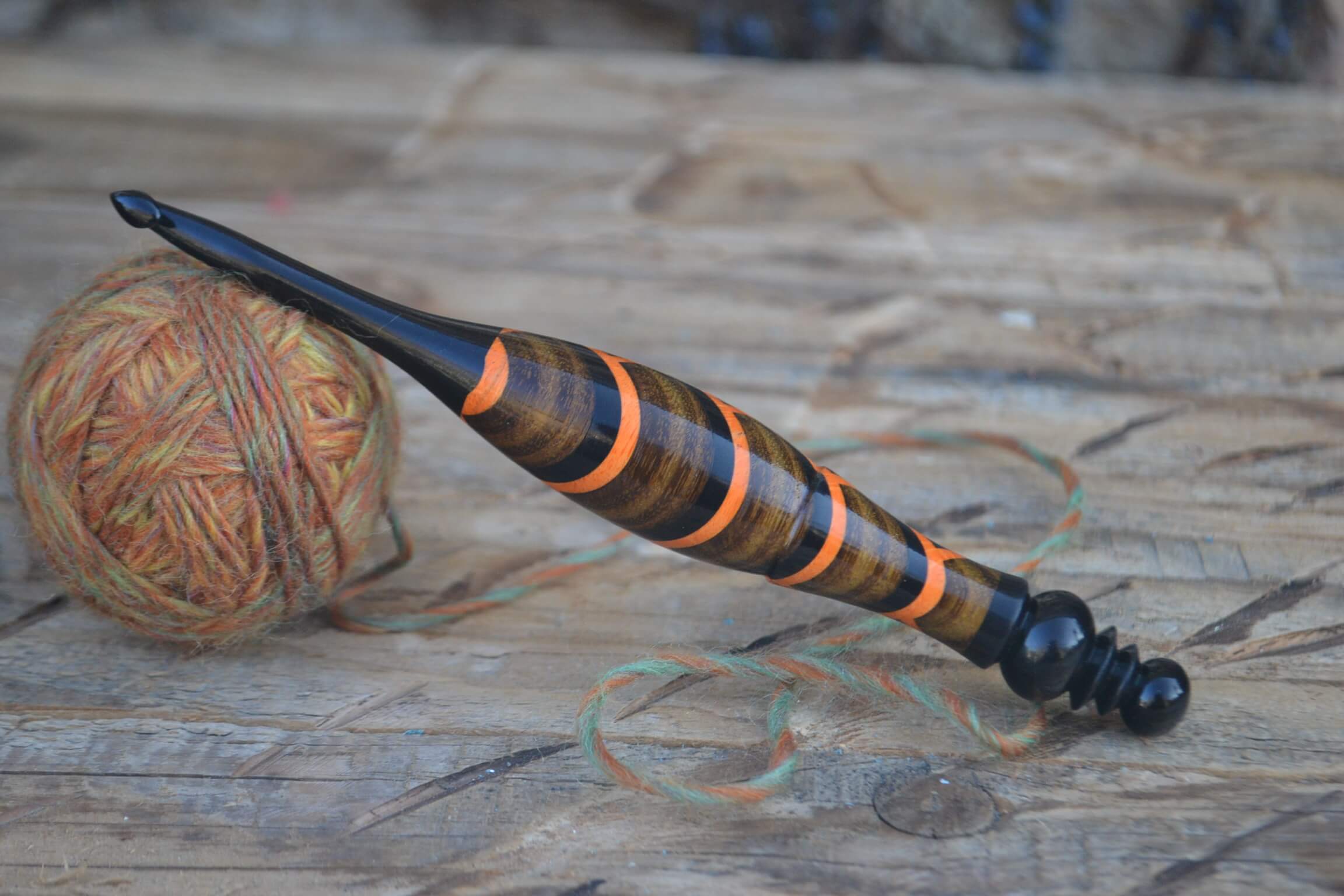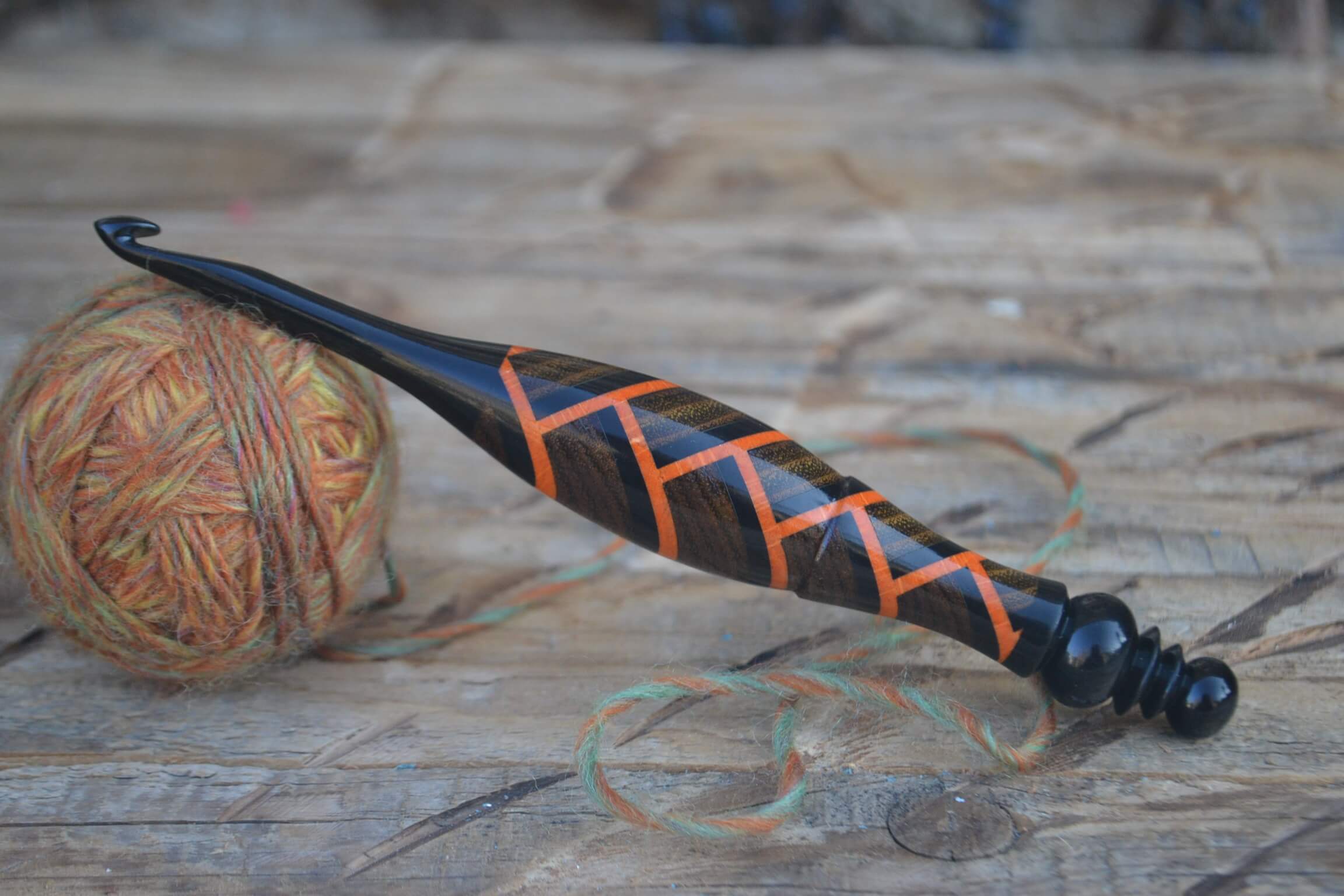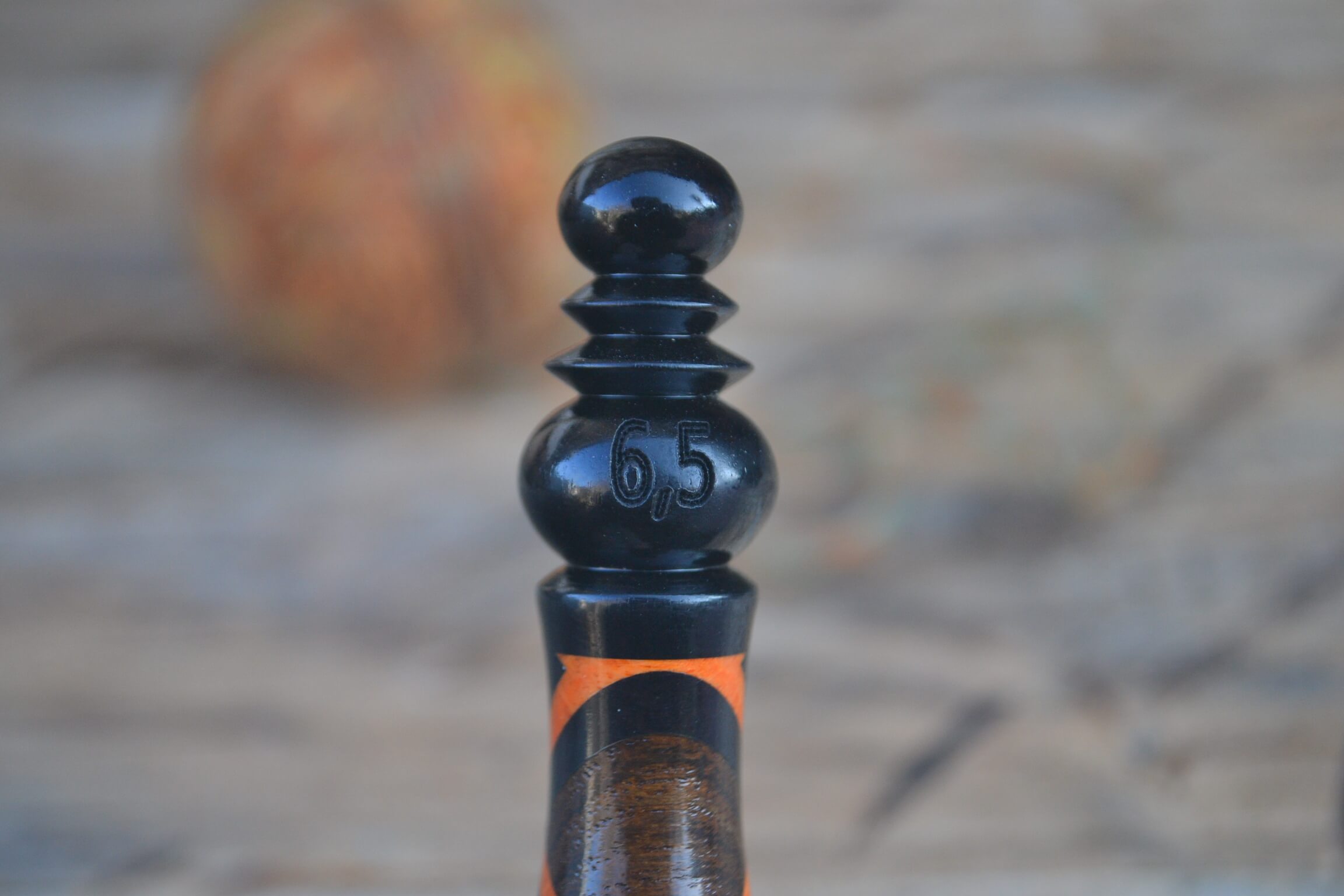 6.5 mm K Robinia, Black & Orange Hornbeam wood mosaic Ergonomic Crochet Hook 23 mm 17.5 cm #1506-5196