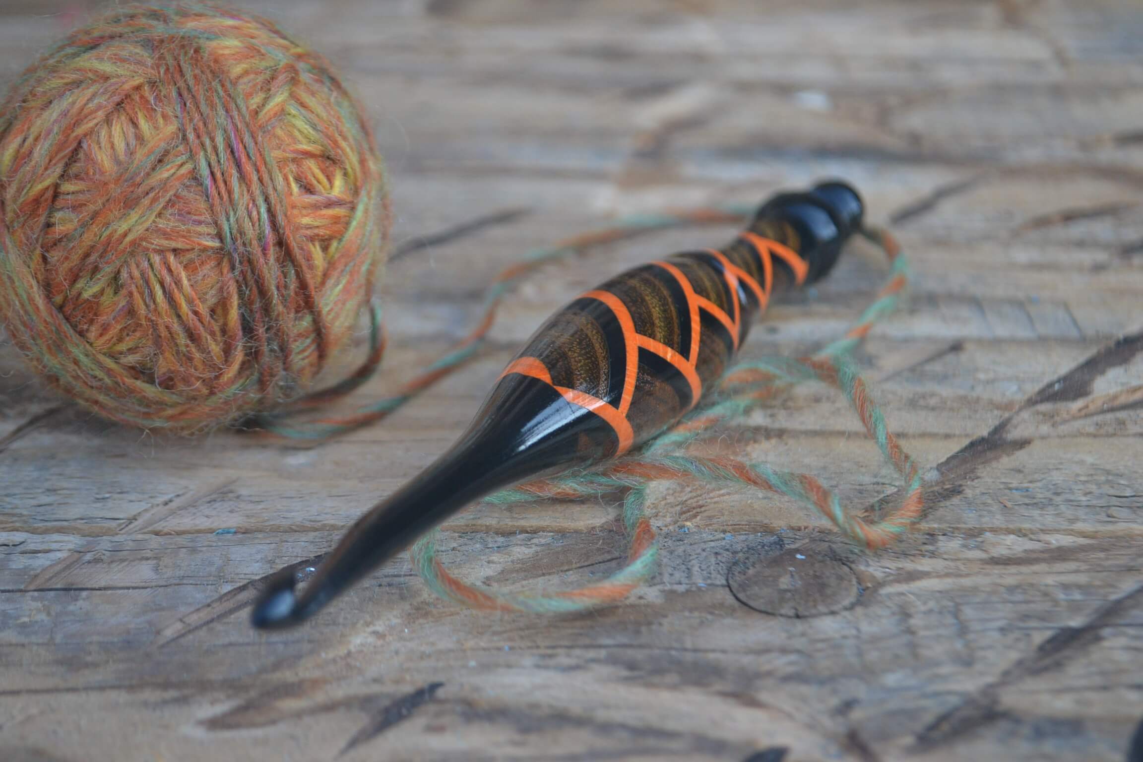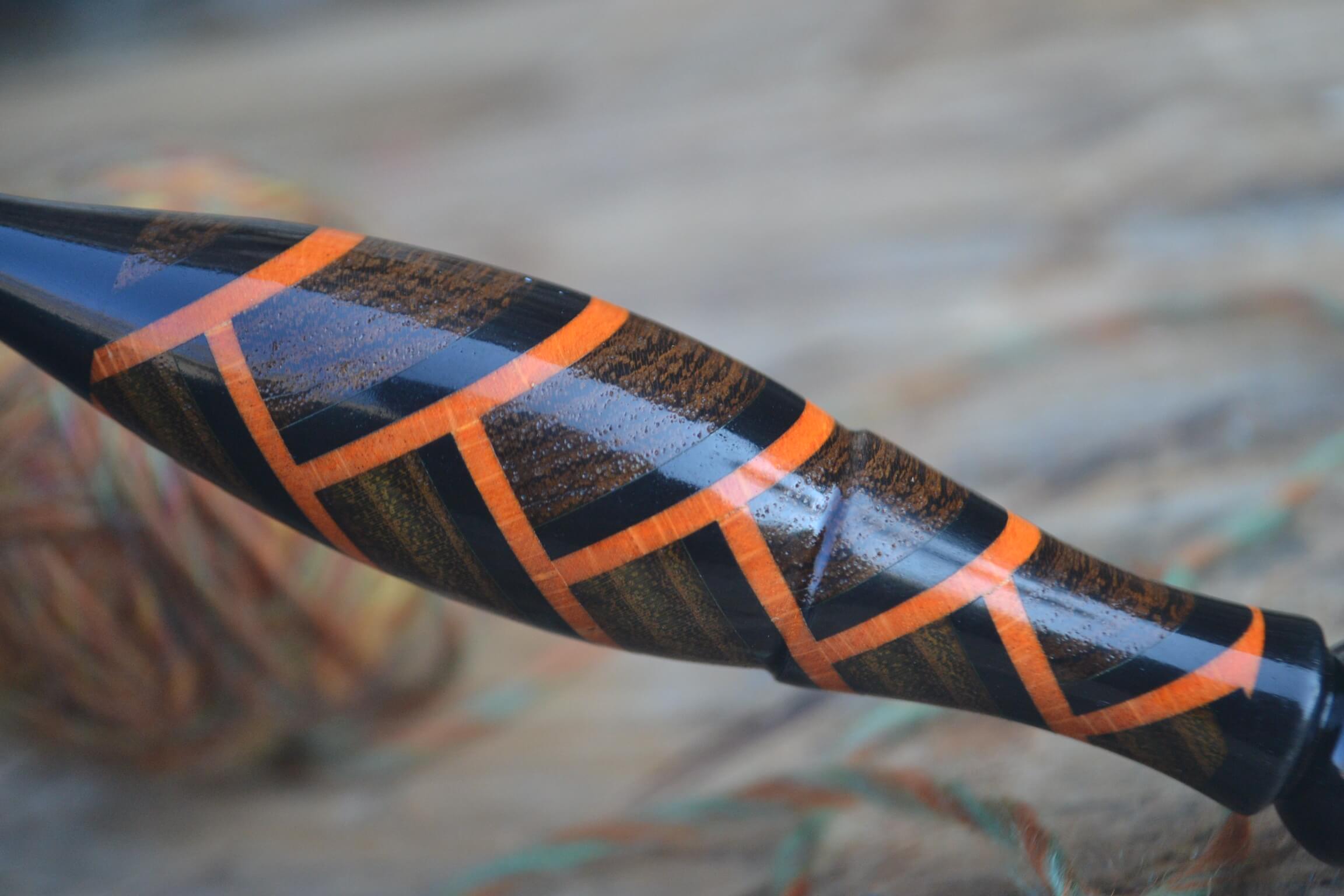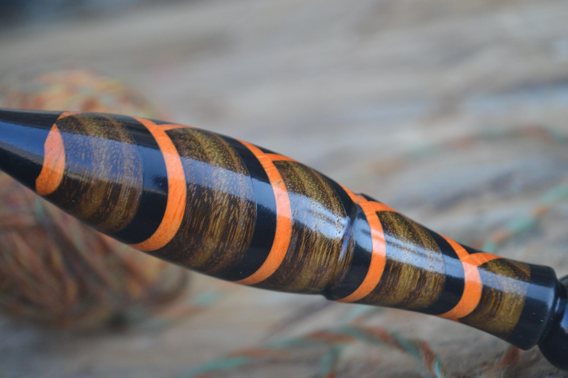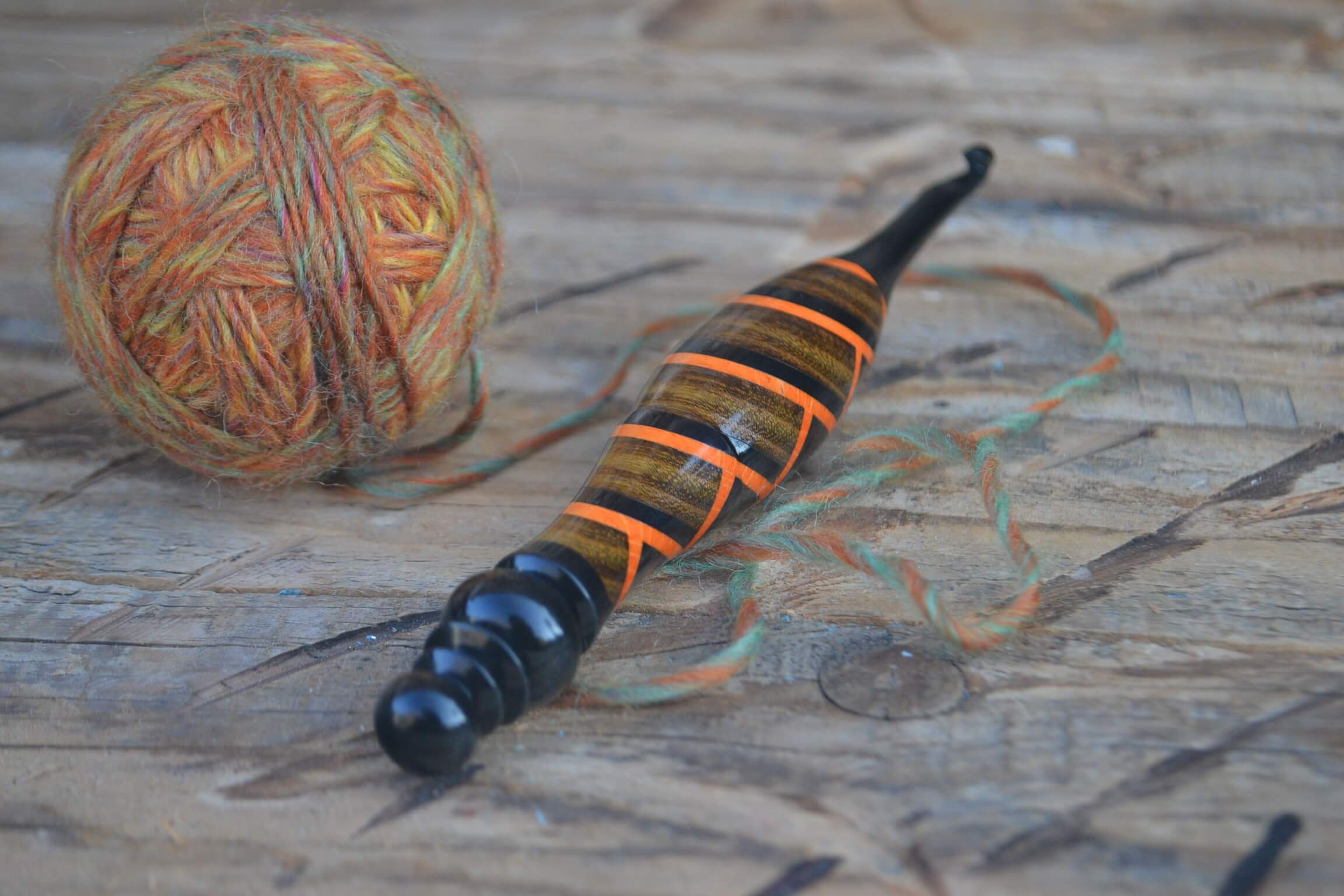 6.5 mm K Robinia, Black & Orange Hornbeam wood mosaic Ergonomic Crochet Hook 23 mm 17.5 cm #1506-5196
