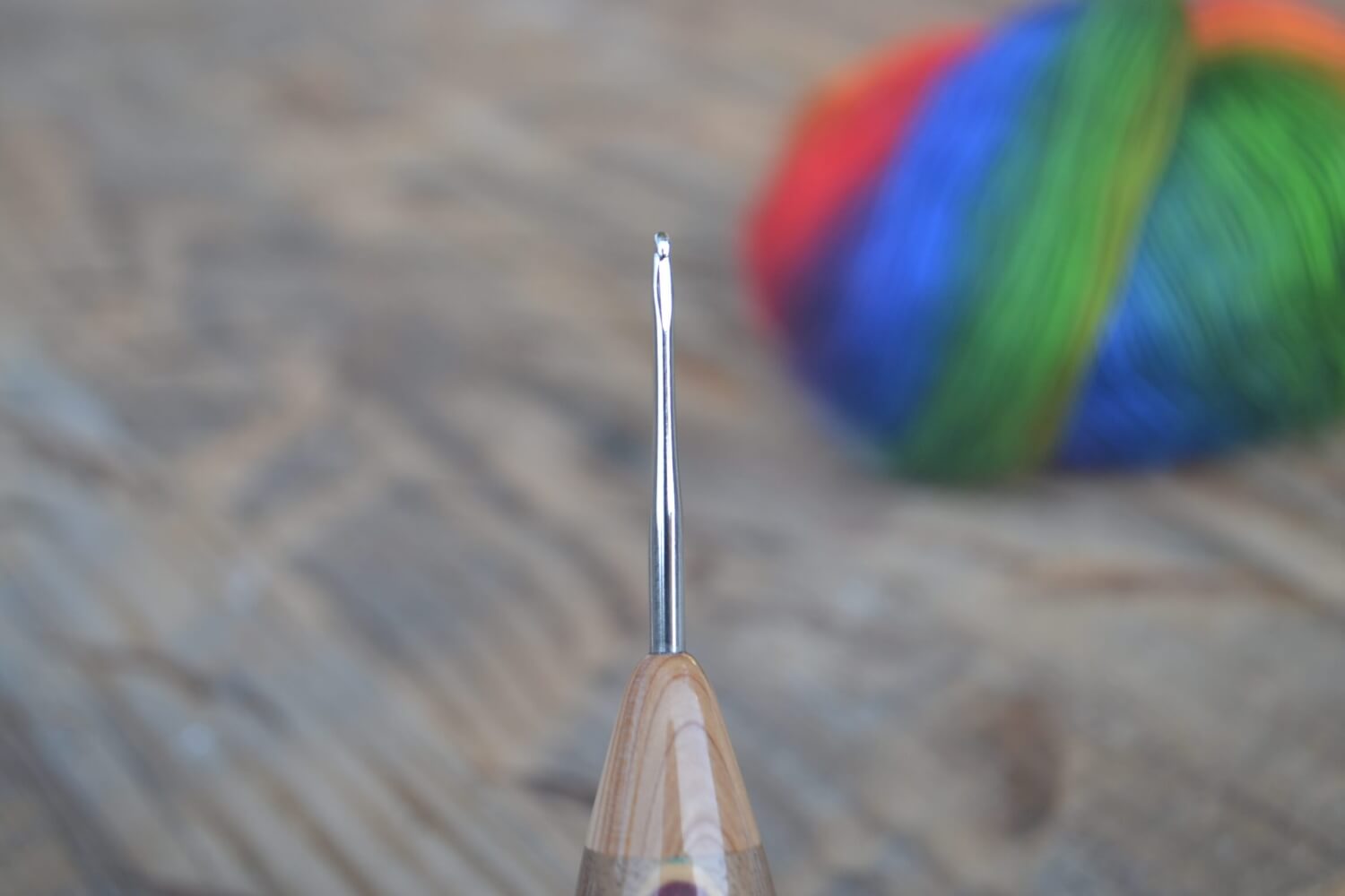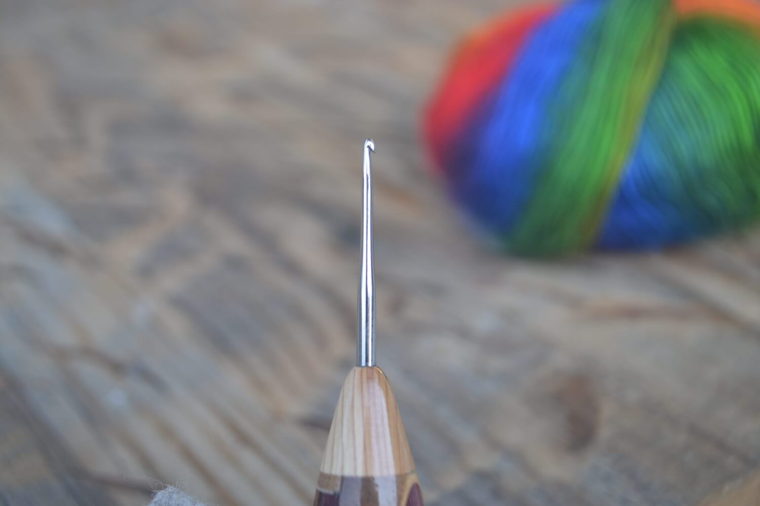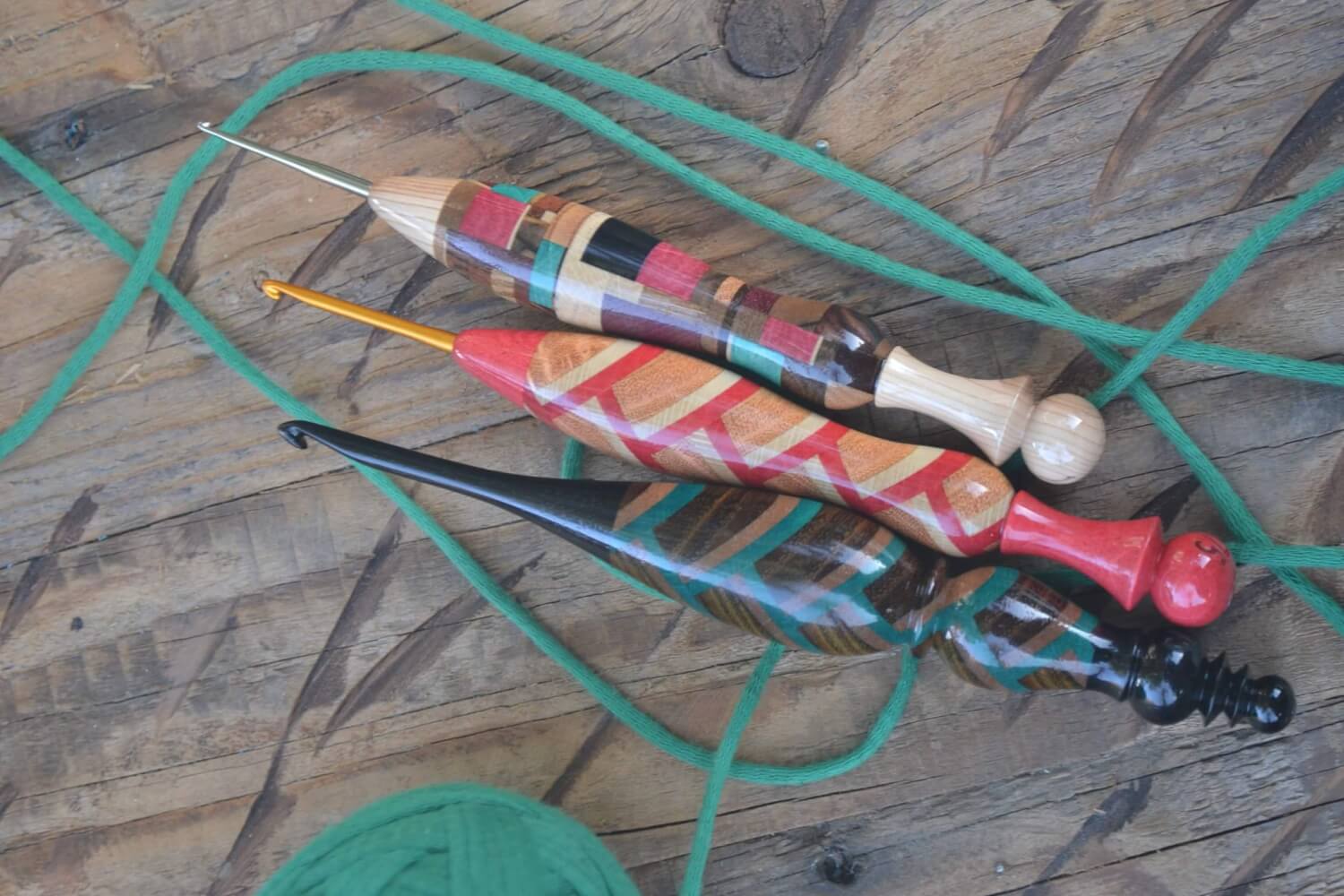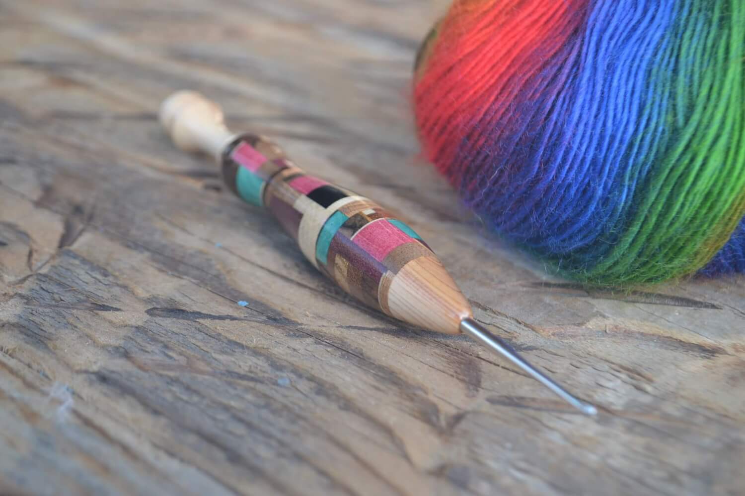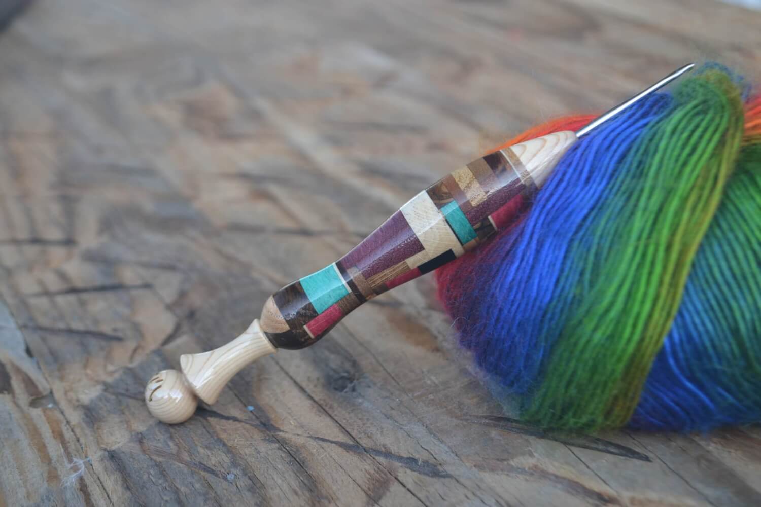 3 mm Tulip Gold, Bog Oak, Ash, Purpleheart, Hornbeam wood mosaic Ergonomic Crochet Hook 23 mm 17 cm #1343-5033