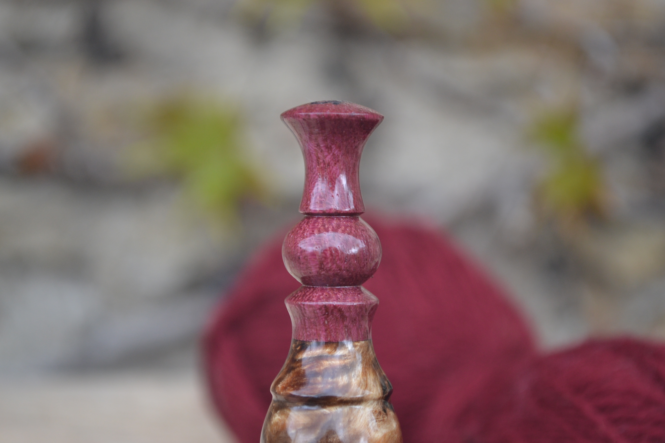 | Wood | Purpleheart, Stabilized Curly and Burl |
