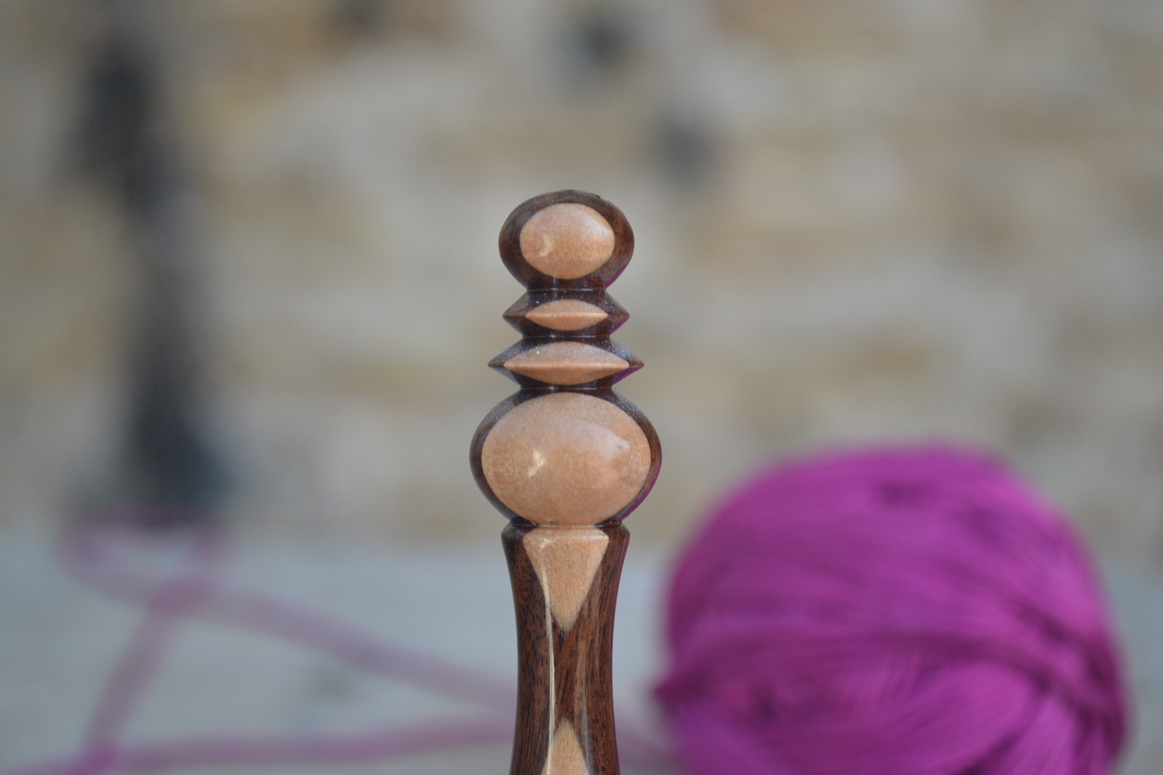 6 mm J Katalox and Box Elder Stab. Curly/Burl wood Ergonomic Crochet Hook 23 mm 16.5 cm #503-4273