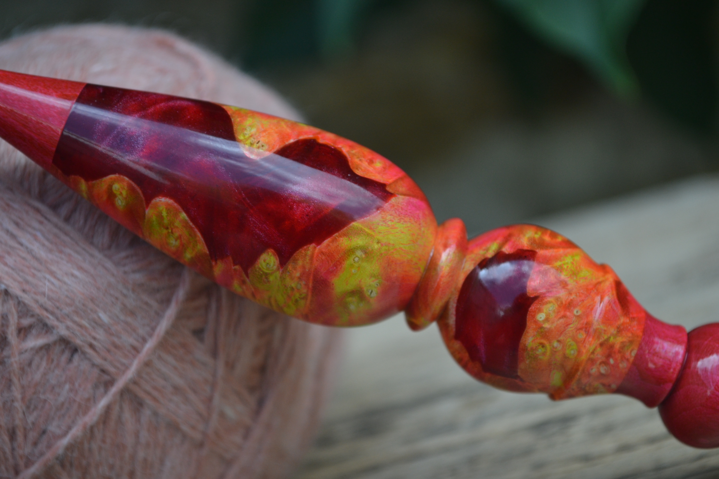 2,2 mm Tulip Gold, Katalox and Box Elder Stabilized Curly and Burl wood Ergonomic Crochet Hook 23 mm 16,5 cm #607-4297