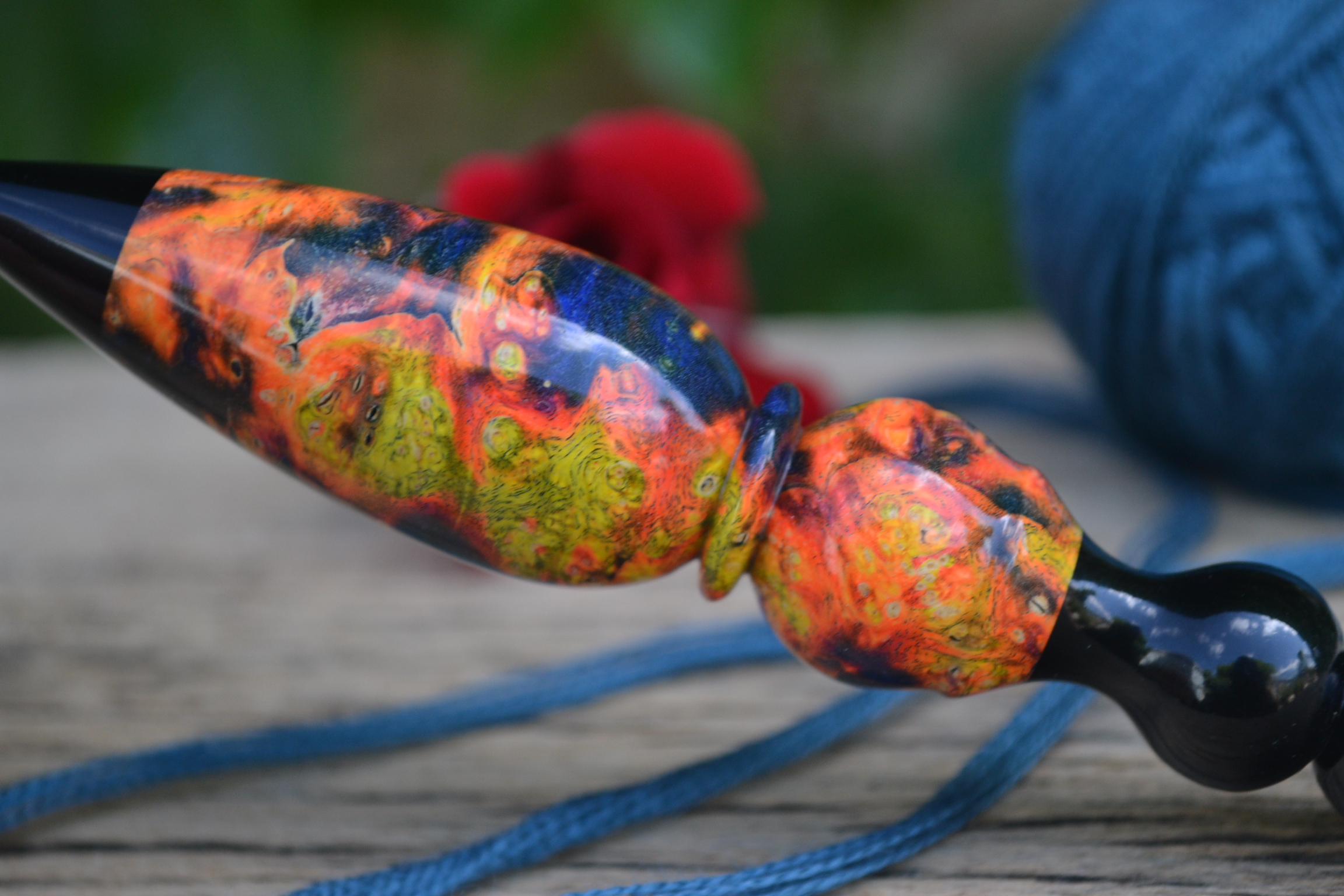 2 mm Clover Soft Touch , Gaboon Ebony and Box Elder Stab. Burl / Hybrid wood Ergonomic Crochet Hook 24 mm 16,5 cm #744-4434