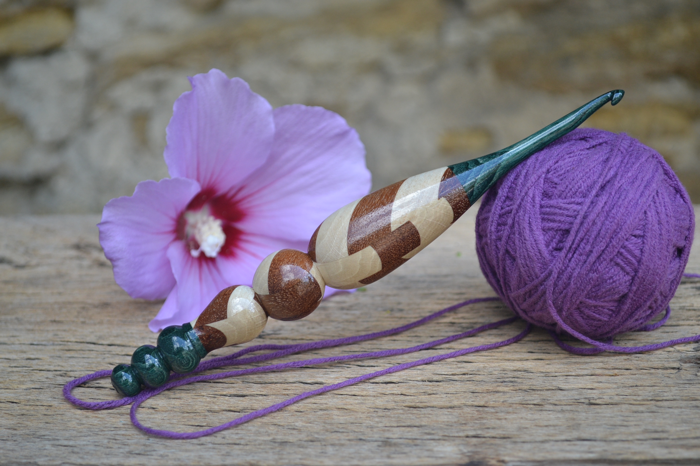 7 mm Lilac wood, Stab. Hybrid and Merbau/Hornbeam wood Ergonomic Crochet Hook 24 mm 15,5 cm #782-4472