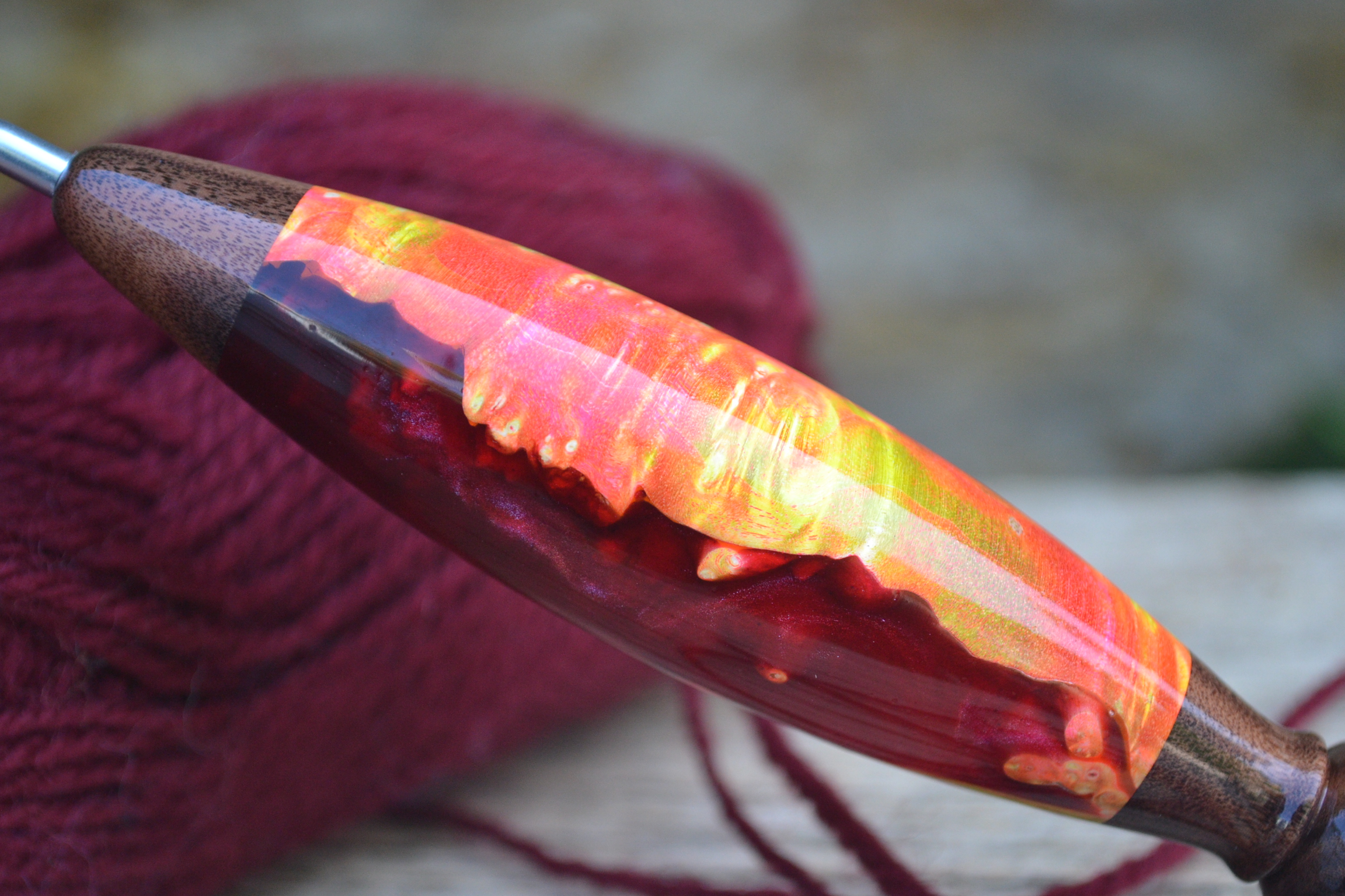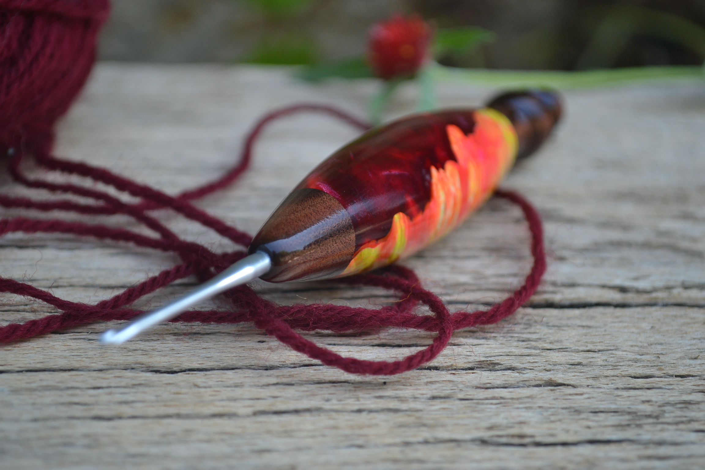 2 mm Clover Amour, Rosewood Santos and Box Elder Stab. Burl/ Hybrid wood Ergonomic Crochet Hook 24 mm 17 cm #830-4520