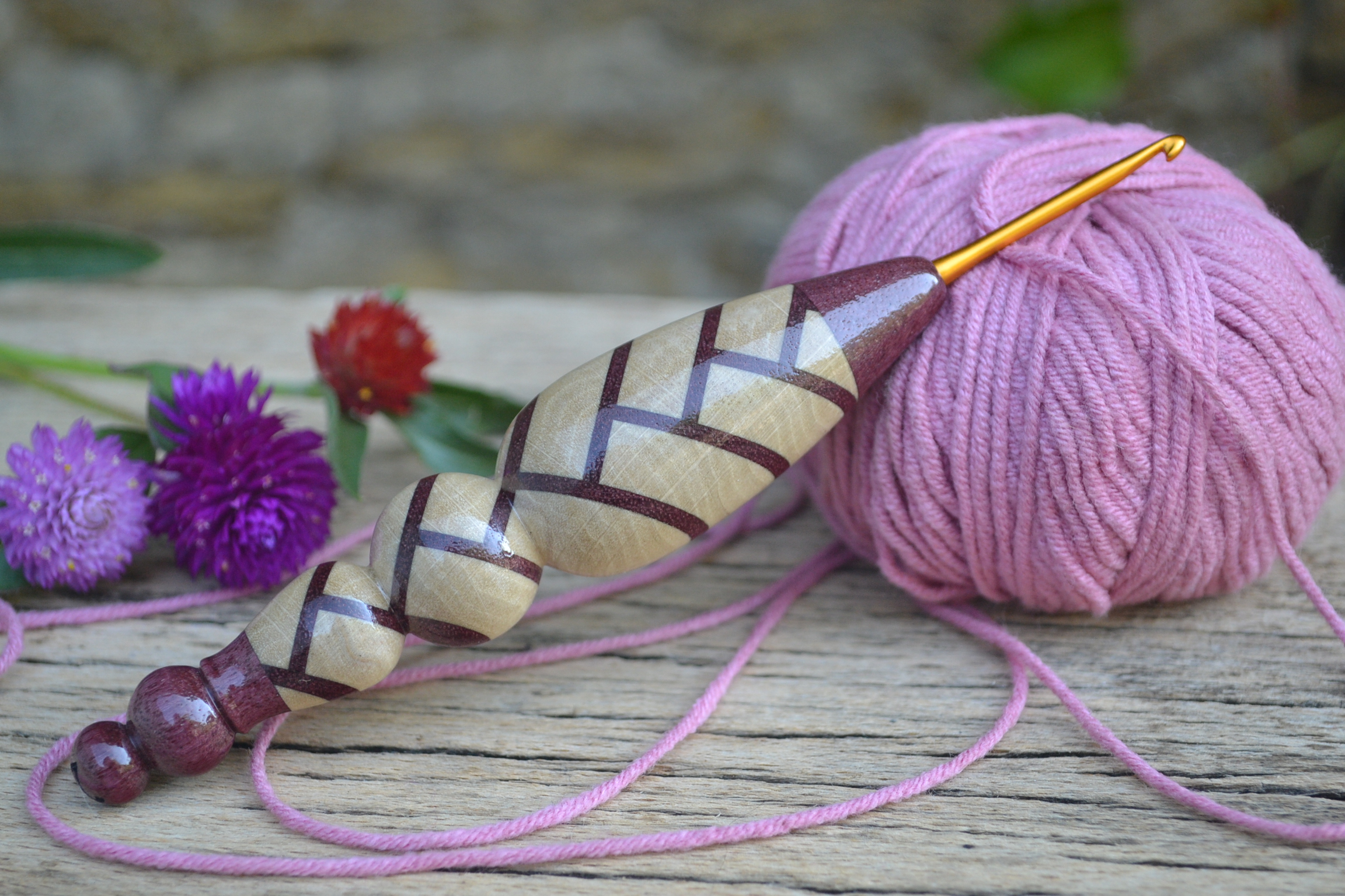 2.5 mm Clover Amour, Purpleheart and Robinia/ Hornbeam wood mosaic Ergonomic Crochet Hook 23 mm 16.5 cm #1130-4820