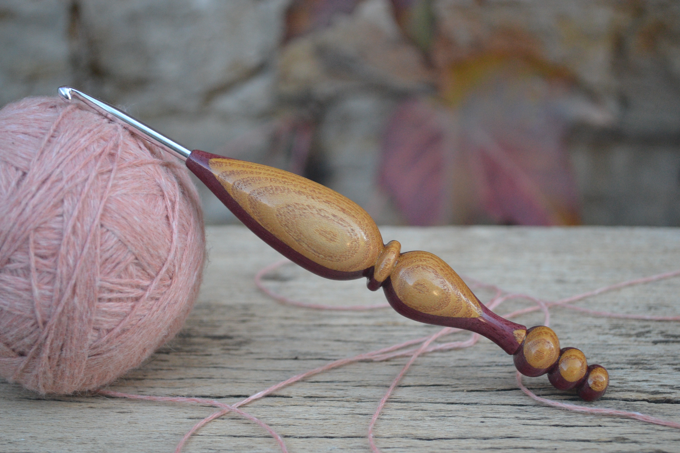 7 mm Purpleheart and Ash/ Hornbeam/ Dark Apricot wood mosaic Ergonomic Crochet Hook 23 mm 16 cm #933-4623