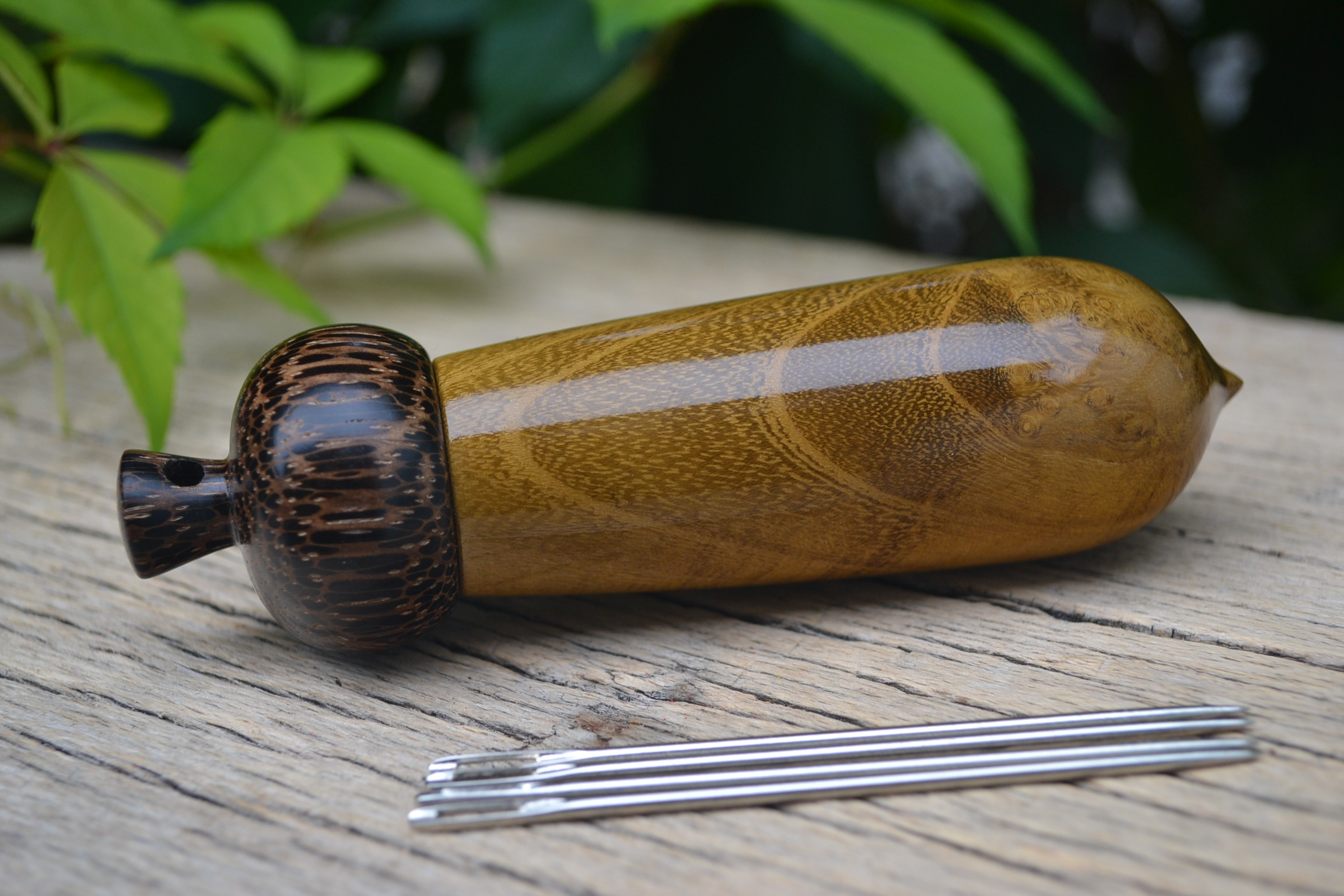 Screw cap Black Palm and Robinia Curly/ Burl wood Acorn shaped box, Sewing needles box, Gift Box, Jewelry Box, Bead box, Collectibles, #37