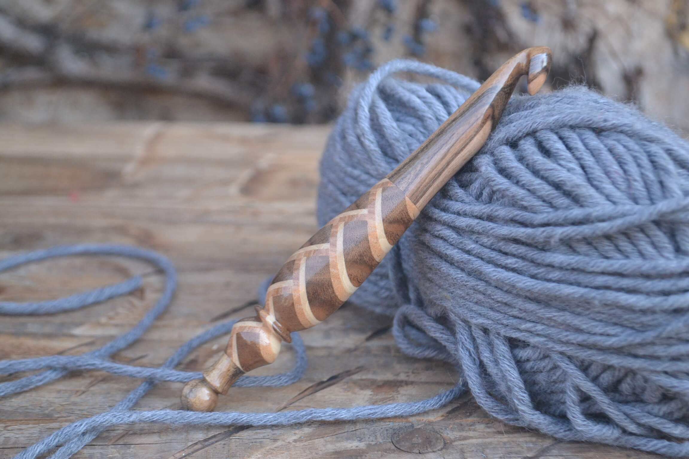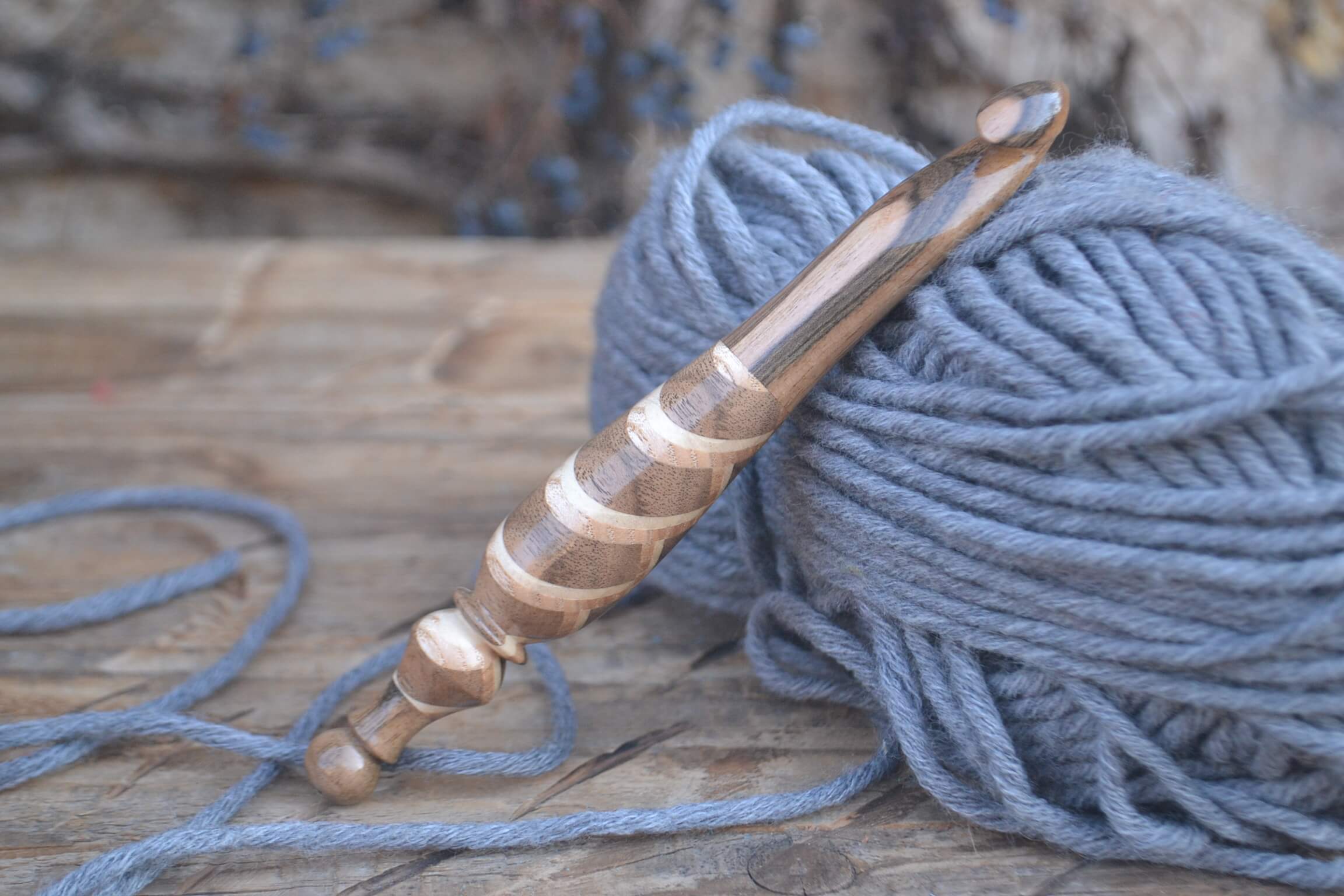 $79.0012 mm Honey Locust, Walnut, Dark Mulberry wood mosaic Ergonomic Crochet Hook 24 mm 16.8 cm #1505-5195