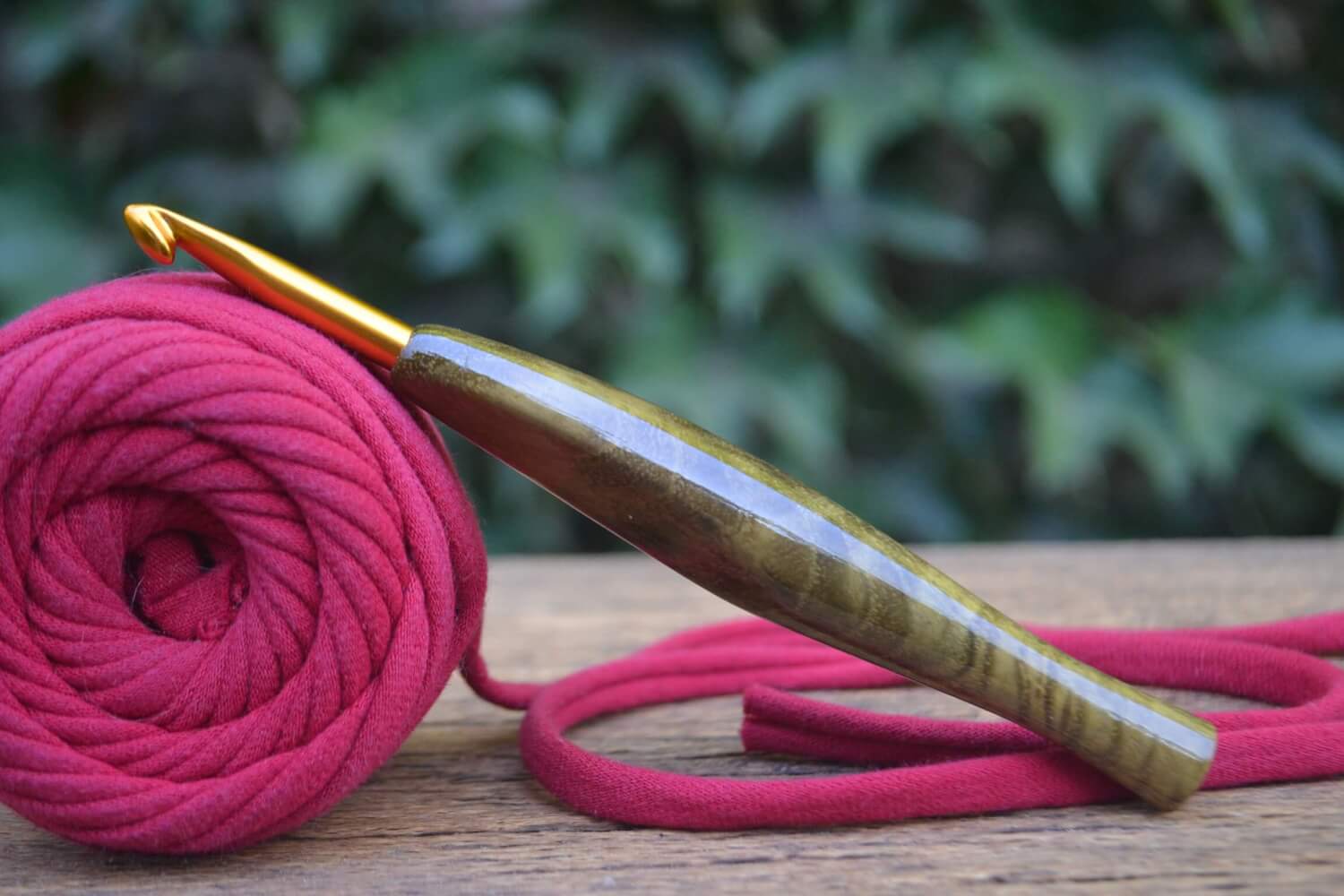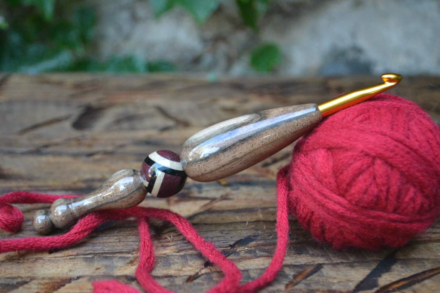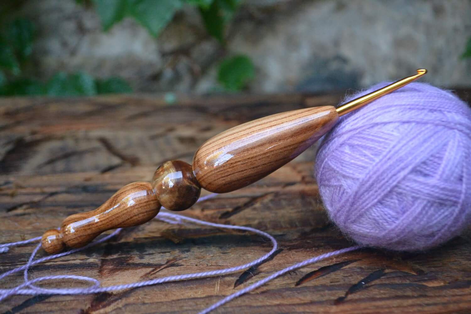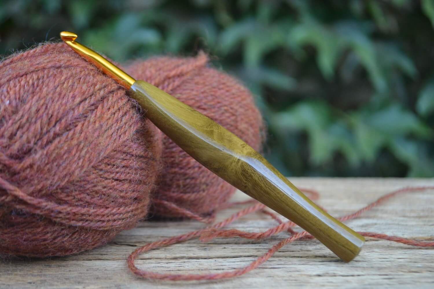 RESERVED for Stephanie 2,5 mm  Tulip Gold, Walnut wood and Stab. Burl wood Ergonomic Crochet Hook 23 mm 17 cm #1328-5018