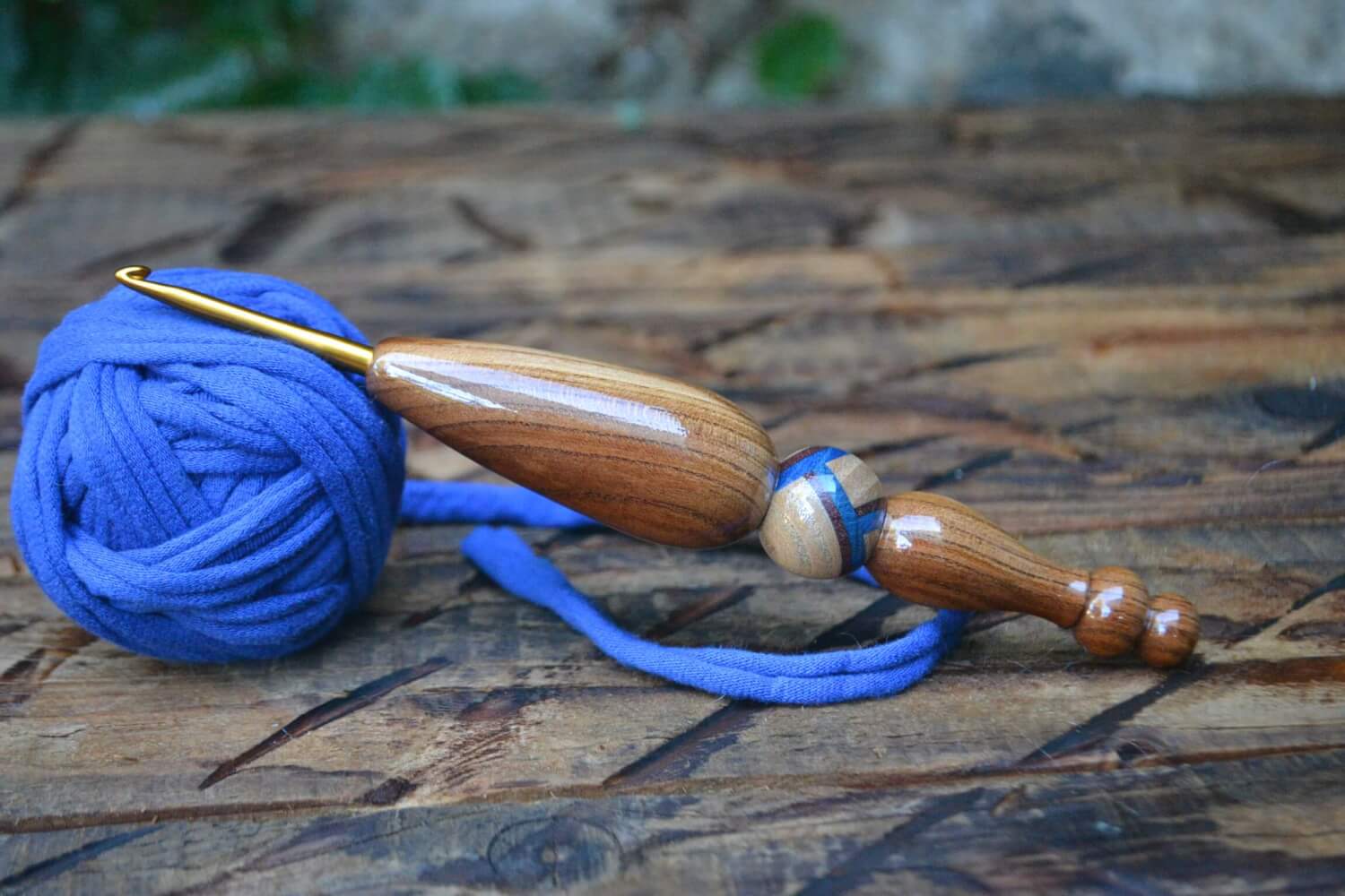 5 mm = size H Tulip Gold, Hornbeam, Purpleheart, Blue Hornbeam wood mosaic Ergonomic Crochet Hook 23 mm 16,5 cm #1333-5023