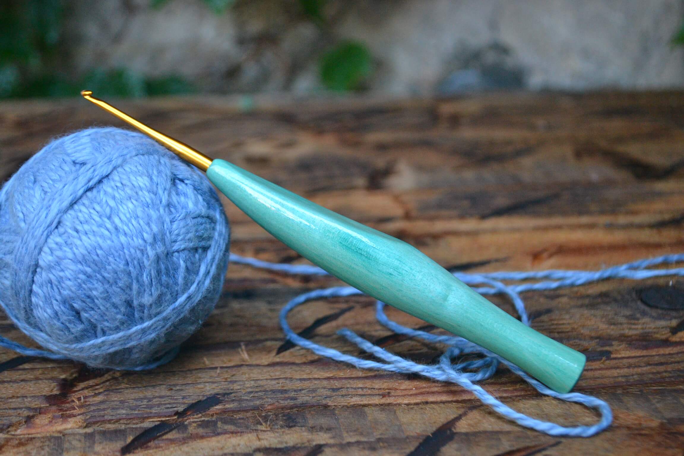 2.2 mm Tulip Gold and Mint Green Hornbeam wood Ergonomic Crochet Needle 18 mm 14.5 cm #1289-4979