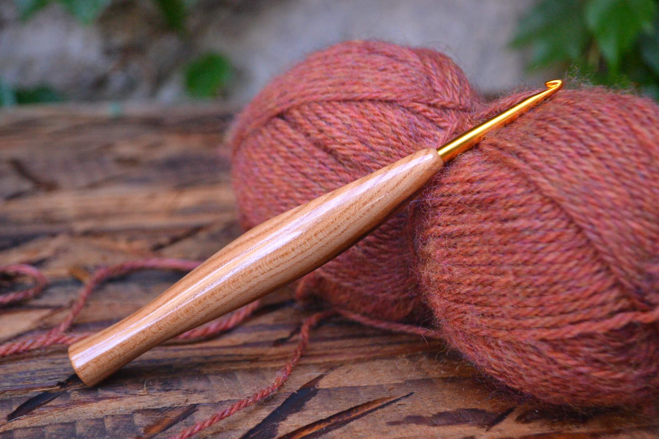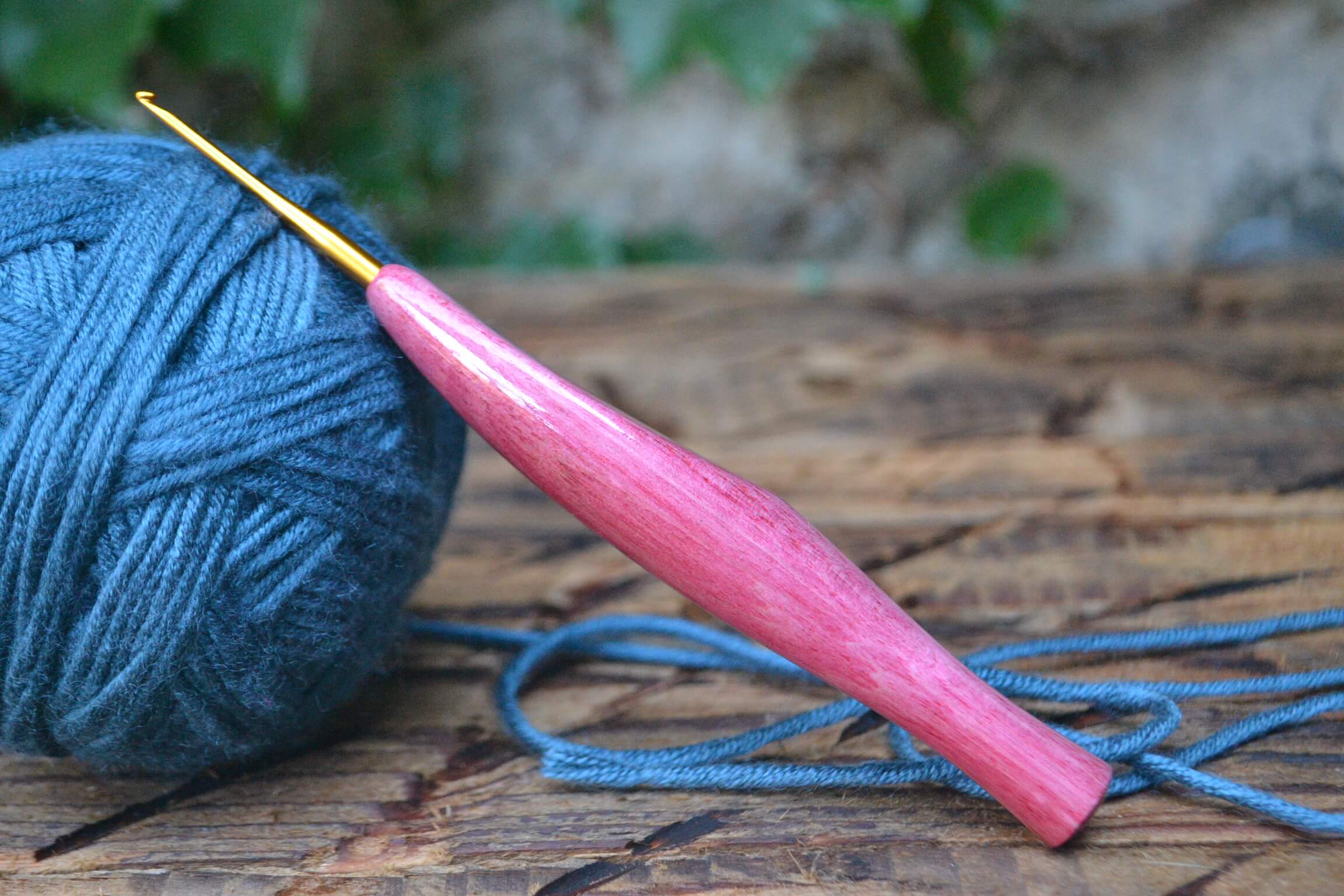 2 mm Tulip Gold and Pink Hornbeam wood Ergonomic Crochet Needle 18 mm 14.5 cm #1288-4978