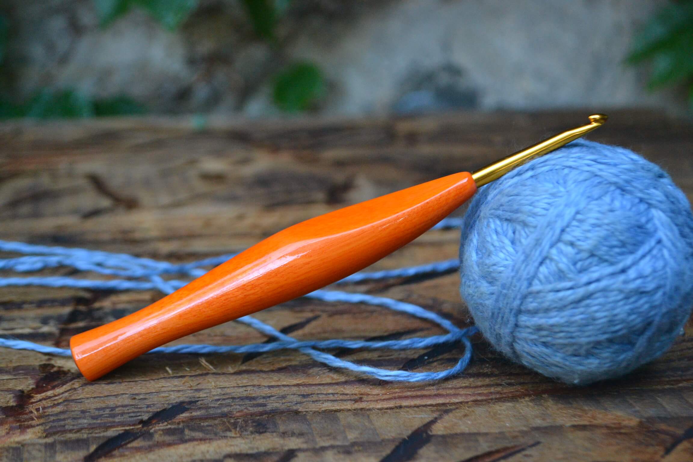 $27.003.5 mm Tulip Gold and Orange Hornbeam wood Ergonomic Crochet Needle 18 mm 14.5 cm #1287-4977