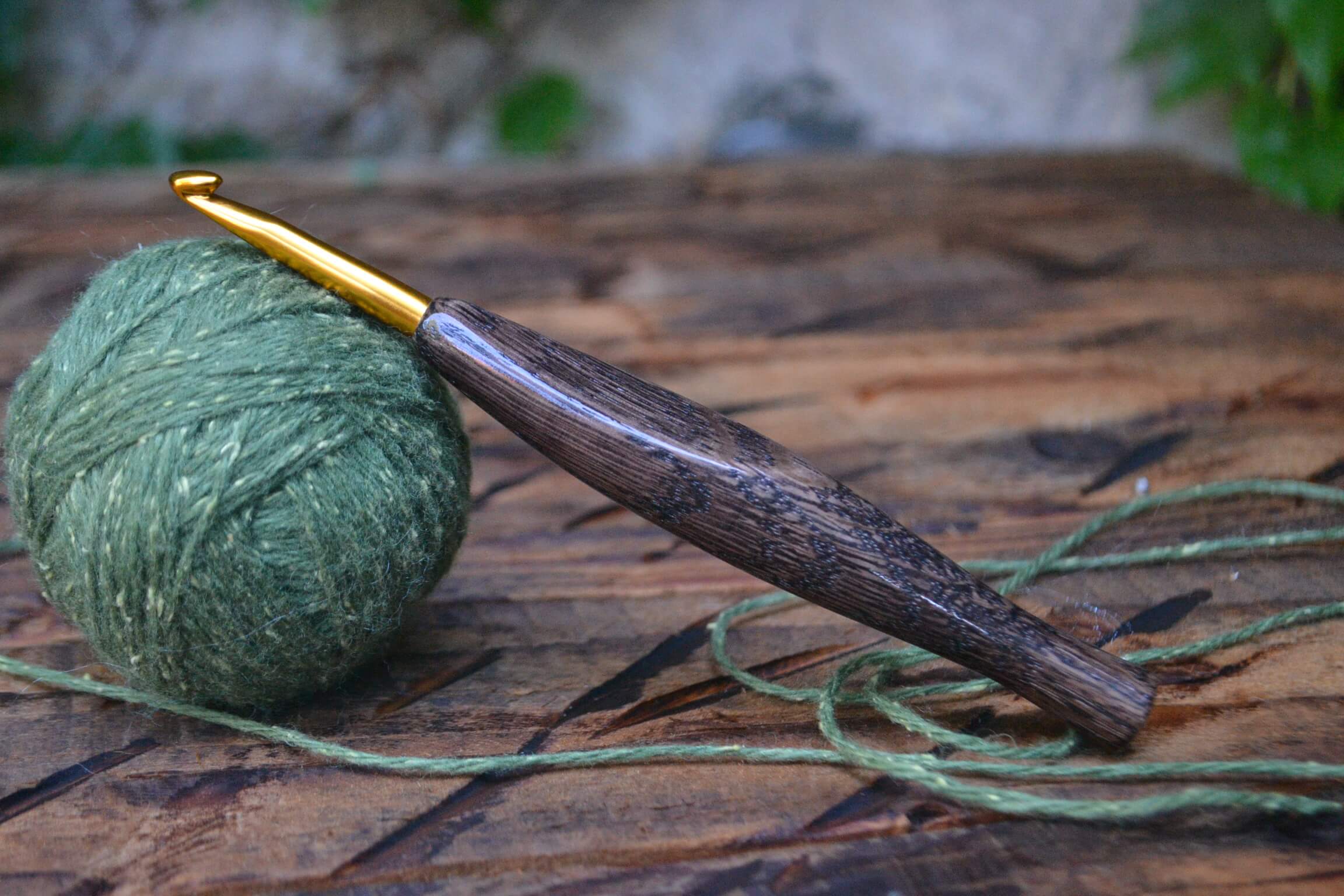 5 mm H Tulip Gold and Oak wood (Wenge color) Ergonomic Crochet Hook 18 mm 14.5 cm #1284-4974