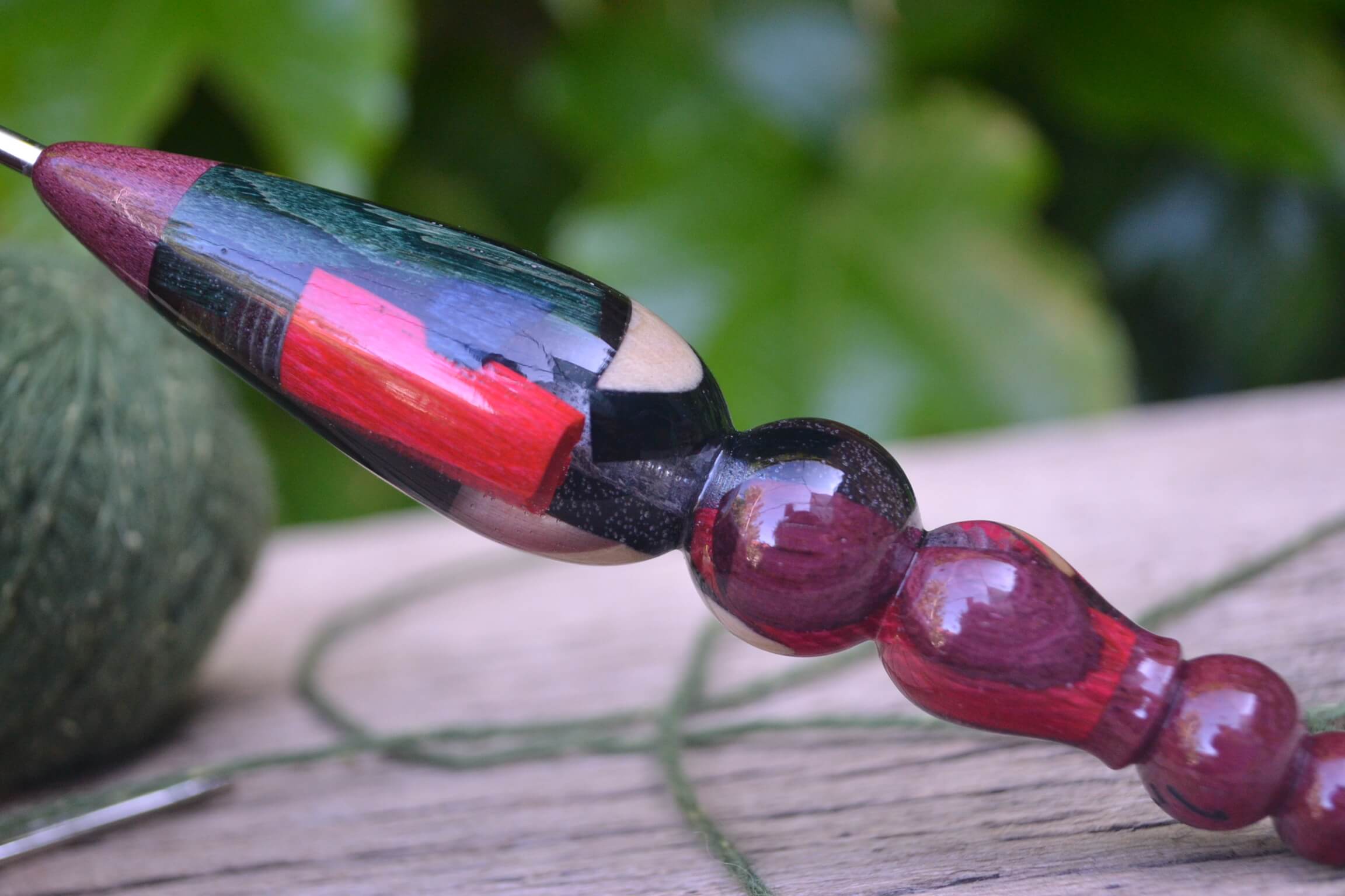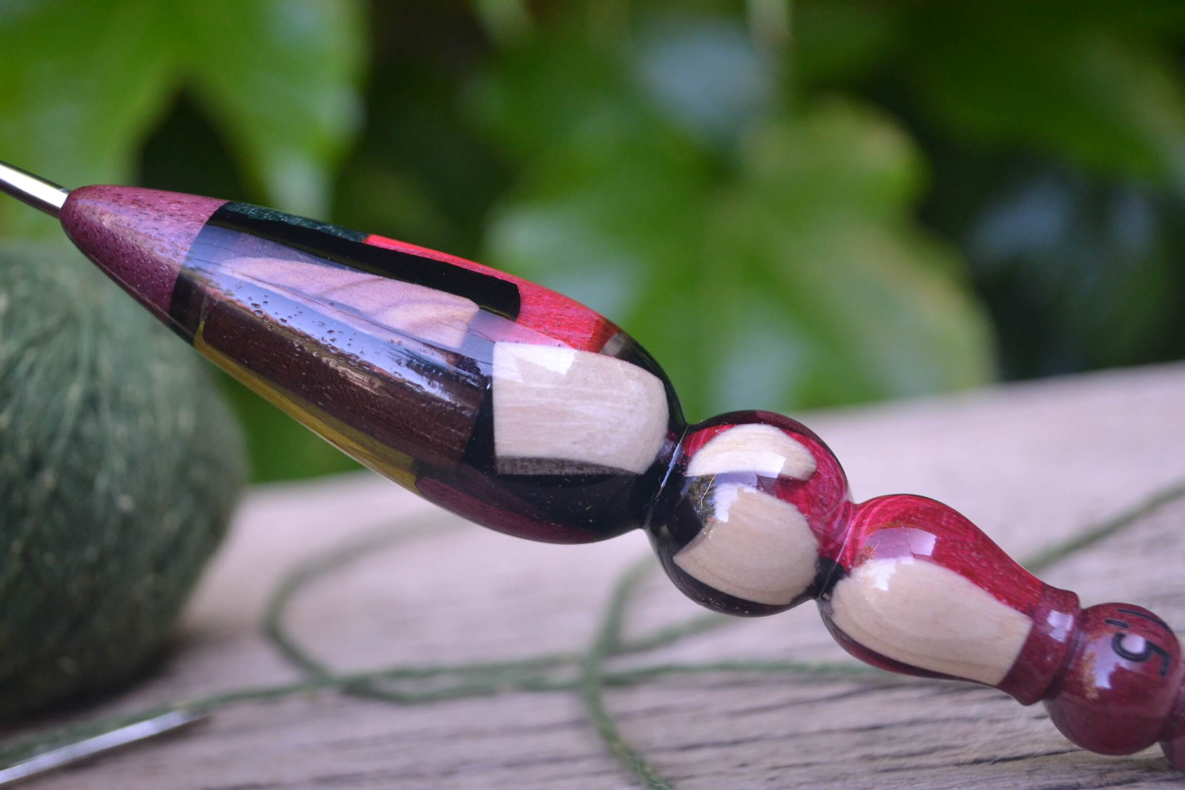 1.5 mm Custom Crochet Hook: Clover Soft Touch steel, Purpleheart wood, Mixed woods in Resin 23 mm 15 cm #1239-4929